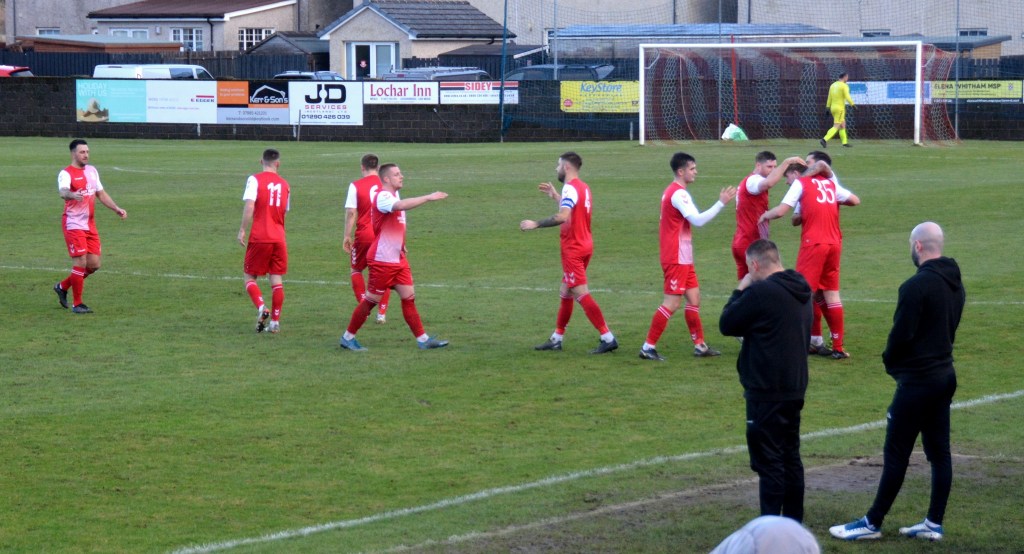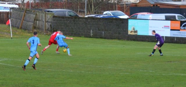 However, a minute later Kilbirnie passed up a good chance of halving the deficit. McGinty’s free kick from 22 yards bounced back off the Glens wall and the ball was scrambled clear of the box only to fall for McGinty who lofted a high ball back into the box where Hamilton’s glancing header deflected off Pettigrew and fell into the path of Dallas but with only the keeper to beat, he skewed his shot wide of the post.