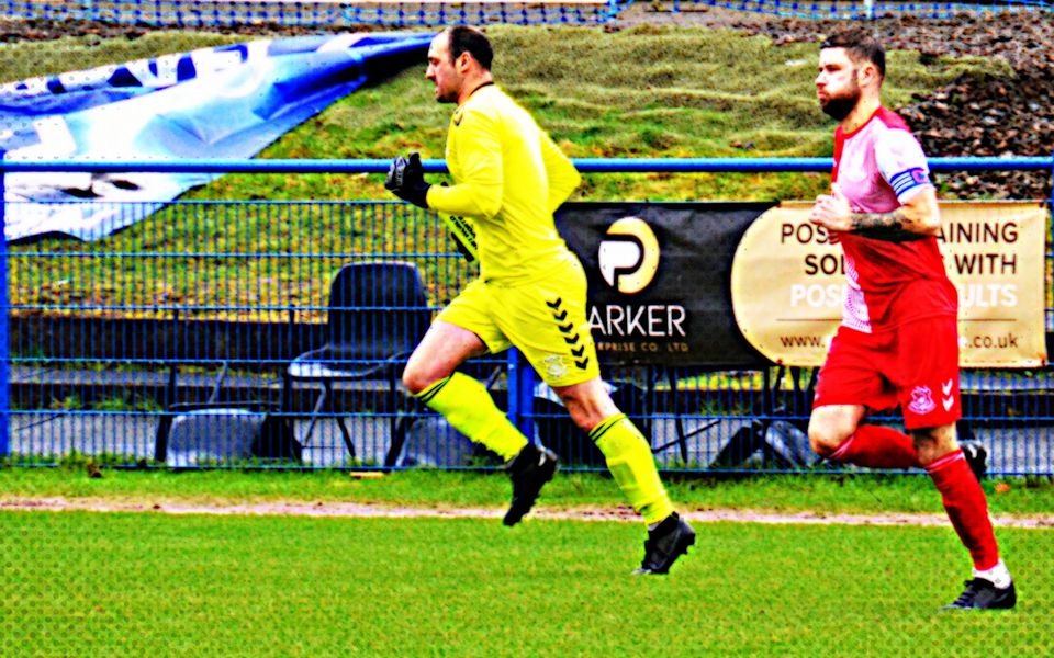 Two minutes later Craig Moore tried a clever lob from 25 yards only for Markey, on his six-yard line, with an outstretched arm and strong hand diverted the ball over the bar. Kerr was on hand to head McShane’s corner clear of the box only for Darvel to quickly retrieve the ball and McShane curl a great ball to the near post where Moore under pressure from Pettigrew still managed to divert the ball goalward only for Markey to pull off a super save and push the ball wide of the post. The corner concluded with Sam McKee being fouled in the box, spotted by the referee.