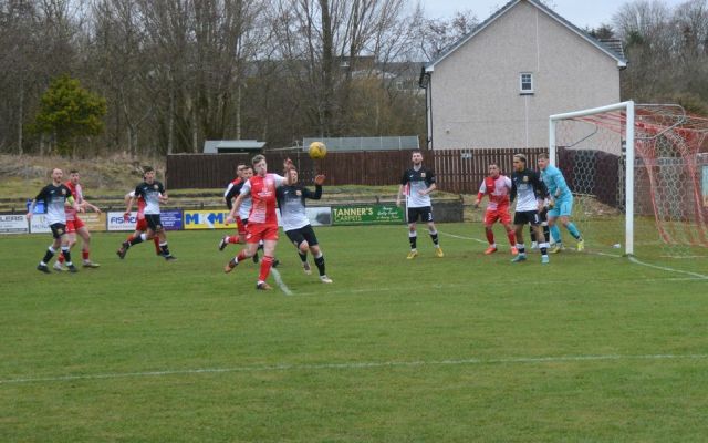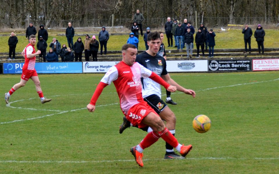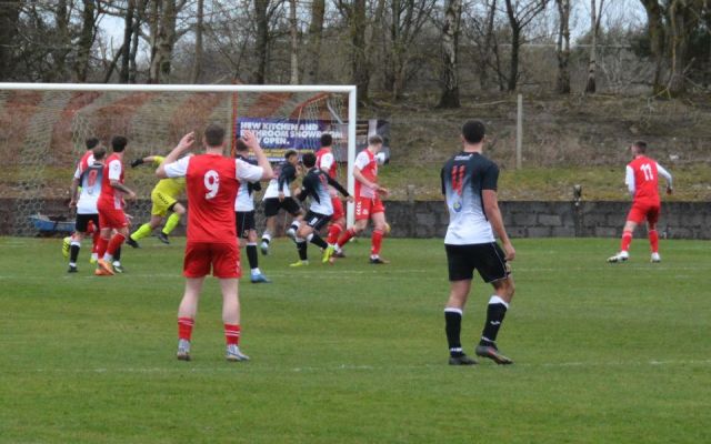 The home side built from the back through Leon Murphy and Scott McLean combining deep on the left before the latter floated a ball into the six yard box where Hugh Kerr leapt between two defenders only for his header to slip wide of the post.