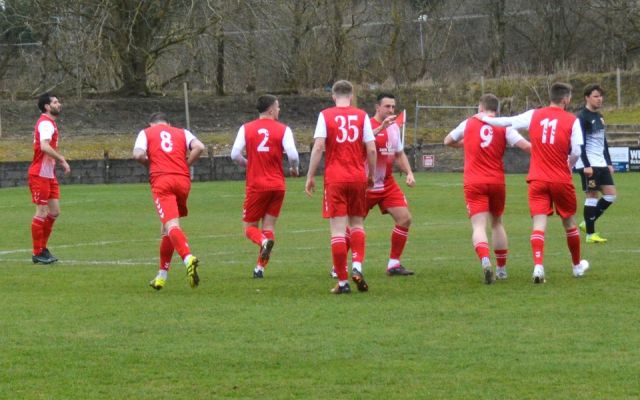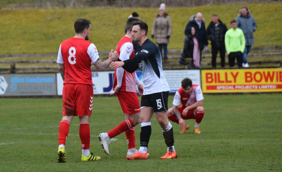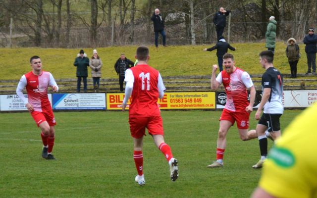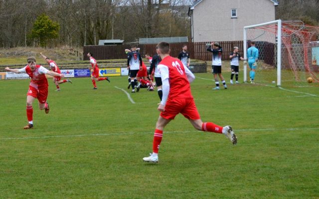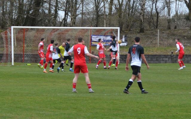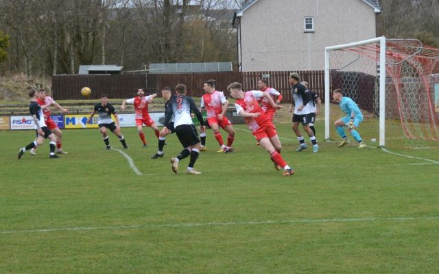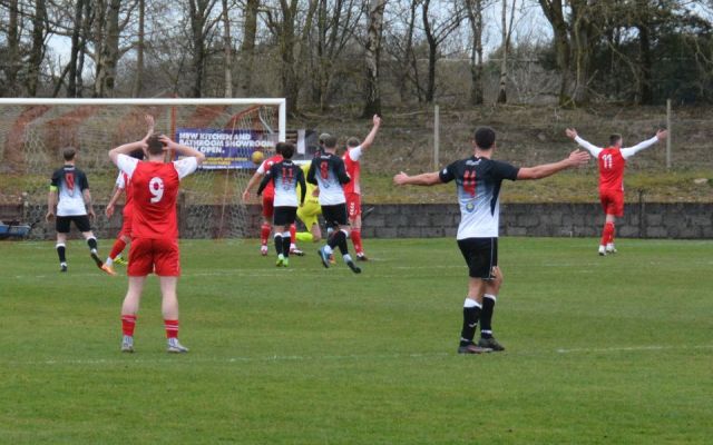 On 73 minutes Beith regained the lead. A throw on the left, from a few yards short of the bye-line, was headed on by Rowe and Monk leapt to nod the ball down into the six yard where Josh Fowler tpounced to lash the balll home from close range – Glenafton’s strong appeals that he done so from an offside position were waved away.