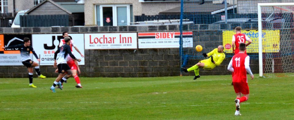 Four minutes into added time and the final push by the home side saw them win a free-kick inside the Beith half as players from both sides lined up along the 18 yard line and as Murphy floated a high ball into box the line advanced goalward while Stott progress from his goal-line to leapt and clutch the ball with both hands before falling to the ground and holding his prize tightly seconds before the final whistle.