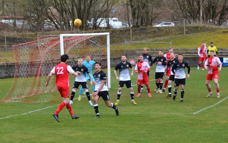 The home side built from the back through Leon Murphy and Scott McLean combining deep on the left before the latter floated a ball into the six yard box where Hugh Kerr leapt between two defenders only for his header to slip wide of the post.