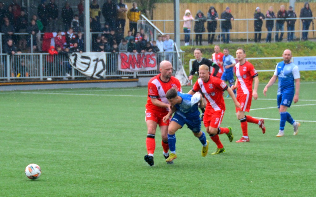 Play raged back and forth but with 11 minutes gone Bankies were forced to make an early substitution after Creag Little struggled to recover from an earlier knock and was replaced by Danny MacKenzie.