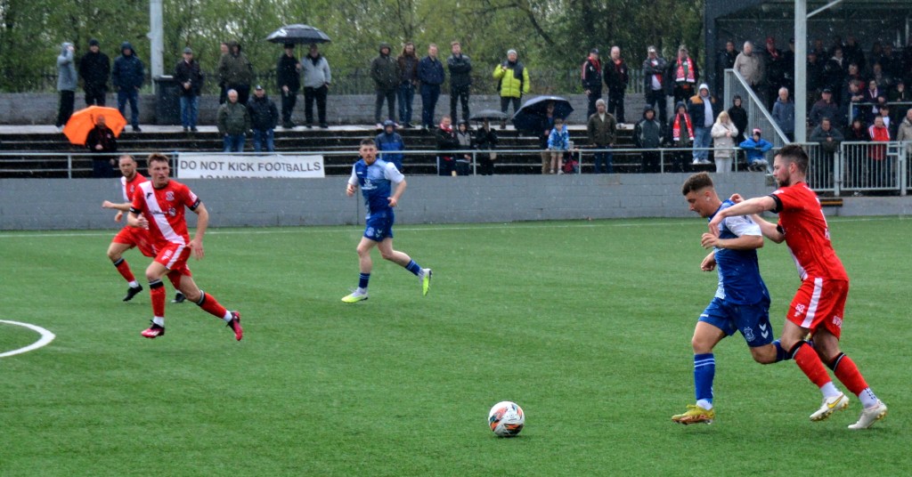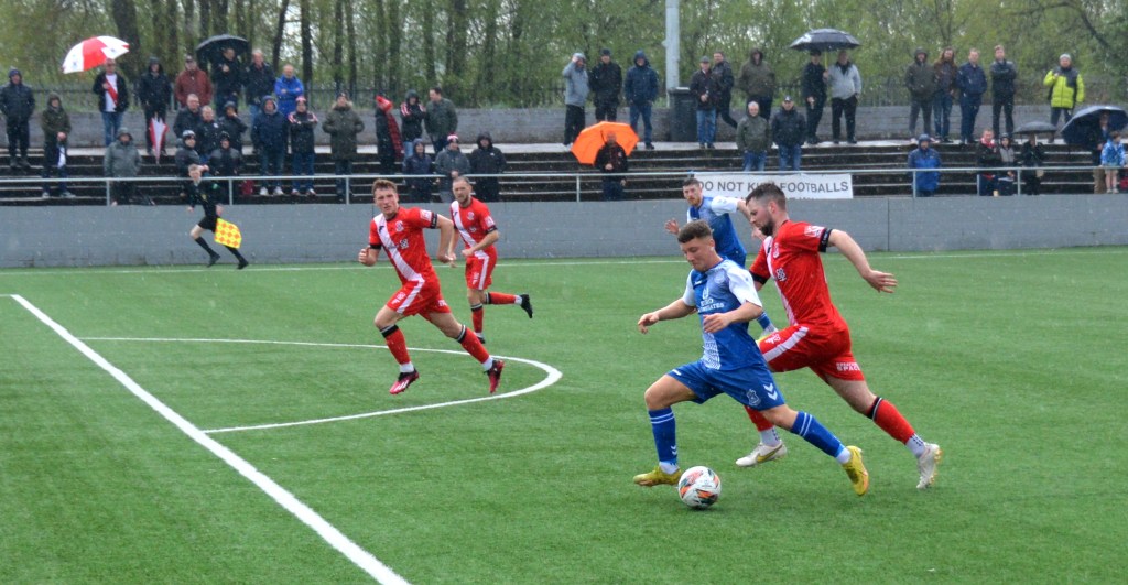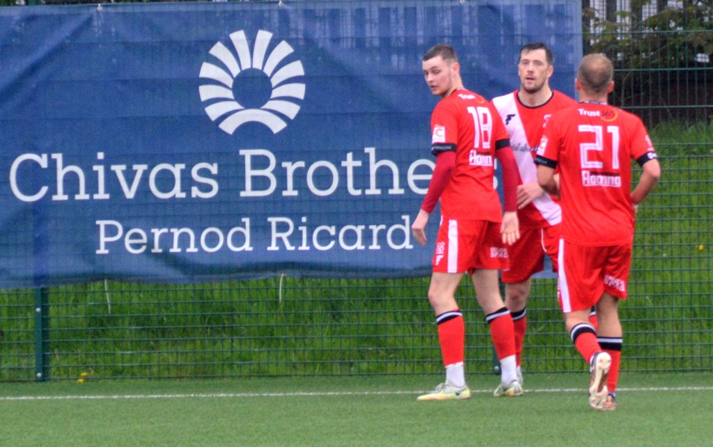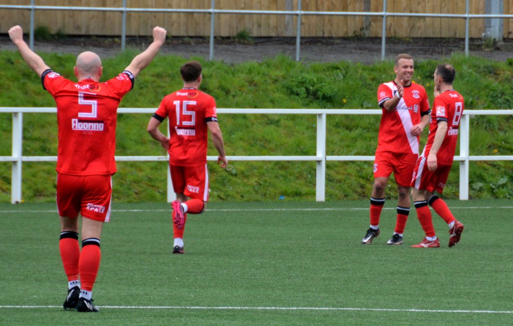 At the other end McLernan broke into the left-hand side of the box forcing Burns to rush from his line and then coolly rounded the keeper with a great touch only for McMullin’s sliding tackle preventing him bagging a brace. Back came Glens and Kerr’s header from a Moffat cross was gathered by Donnelly.