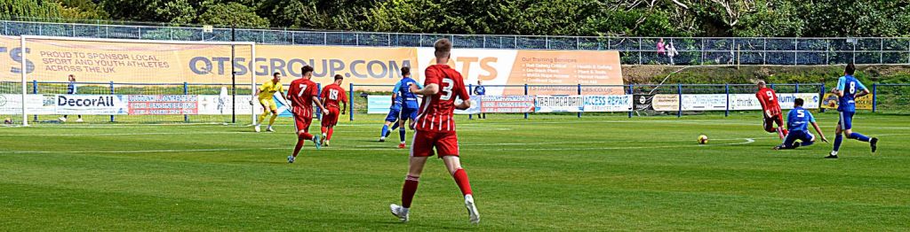 Midway through the half the home side began to press. Ian McShane and Murphy were prevented from breaking into the box by a red line of defenders and Luke McBeth stripped them of the ball. Soon after Scott Ferguson won a free kick at the edge of the box only for McShane’s effort to be bravely headed away by McBeth on the end of the wall. Murphy and Ross Barbour combined down the right to win a corner kick which was cleared by the Glens defence at the expense of a disputed corner which McShane played short to Glasgow before curling the return pass high and wide of the goal.