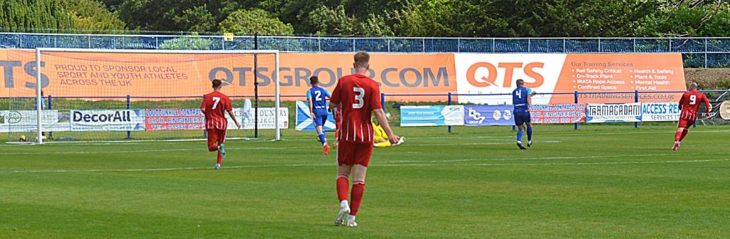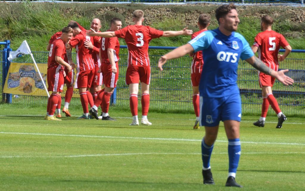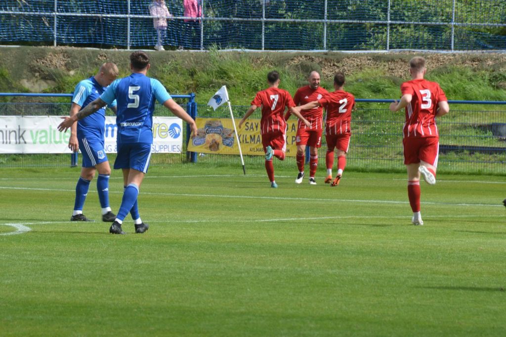 A long ball upfield was intercepted by an O’Halloran header sending it high into the air and the ball then chased down by Moffat who managed to give O’Halloran the slip before progressing and cracking a low shot from the 18-yard line that flew past the outstretched leg of Syme and the reach of the diving Leishman before nestling in the net. As the Glens gathered near the corner flag to celebrate the crestfallen Darvel players made their way to the centre circle.