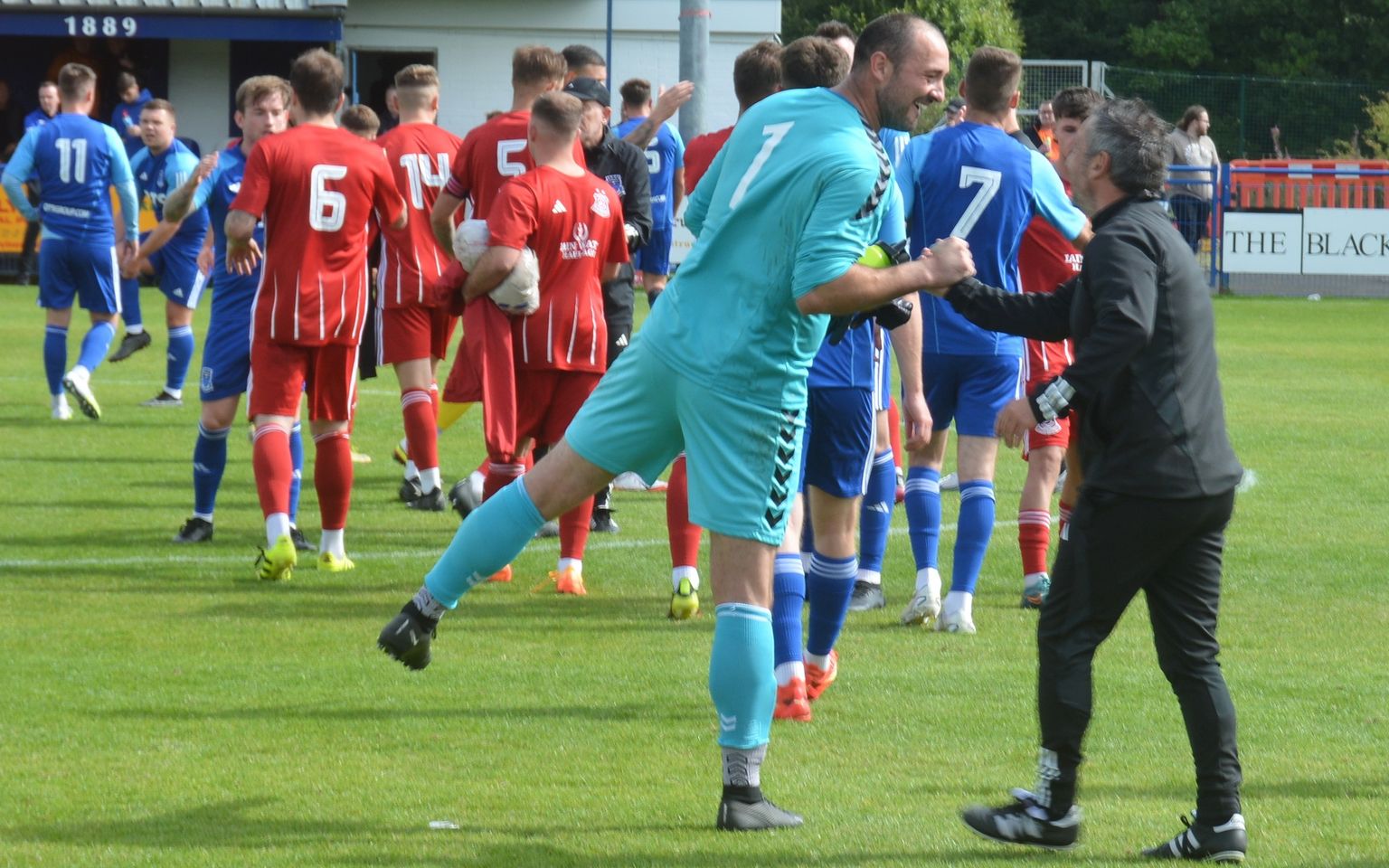 A long ball upfield was intercepted by an O’Halloran header sending it high into the air and the ball then chased down by Moffat who managed to give O’Halloran the slip before progressing and cracking a low shot from the 18-yard line that flew past the outstretched leg of Syme and the reach of the diving Leishman before nestling in the net. As the Glens gathered near the corner flag to celebrate the crestfallen Darvel players made their way to the centre circle.