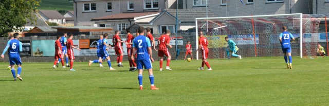 However, a minute later it was Glasgow that slipped the ball to Leon Murphy to take a touch before drilling low shot from the edge of box that although Cullen got a hand to, the ball finished in the net. Darvel 3-0 on 94 minutes.