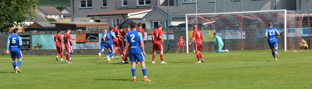 On 18 minutes the visitors had decent chance to double their lead as Moore burst into the left hand side of the box to drill a low shot from the corner of the six yard only to be foiled by Cullen block with his foot that deflected the ball across the face of the goalmouth to be mopped up by Mick McLaughlin.