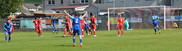 Michael Moffat kicked off for the Glens with Loch Park bathed in the September sunshine. Both sides had ventured forth without threatening until as early as 3 minutes when Stephen Bronsky intercepted a ball upfield and from just inside his own half powered a perfectly weighted header back up the park over the heads of Luke McBeth and Craig Pettigrew for Jordan Moore to chase down the ball and burst into the box, drawing Conor Cullen from his line, but under pressure from McBeth the striker sent the shot well wide of the post from close range.