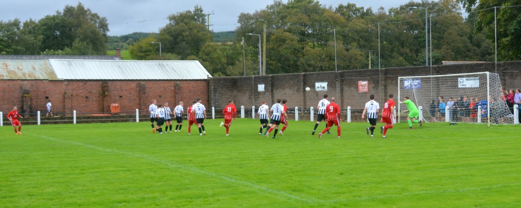 The home side were struggling to breach a well marshalled Glens defence while the visitors continued to threaten with counter-attacks down both flanks one of which finished with them winning a corner-kick on the right. Sinnamon clipped a short pass back to Paton on the outskirts of the box to curl a high ball to the back post where Frizzell stooped to get a head on it, only for an attempted clearance from Kello to end up in the opposite corner of the net for an own goal. Glens 4-0 up on 26 minutes.
