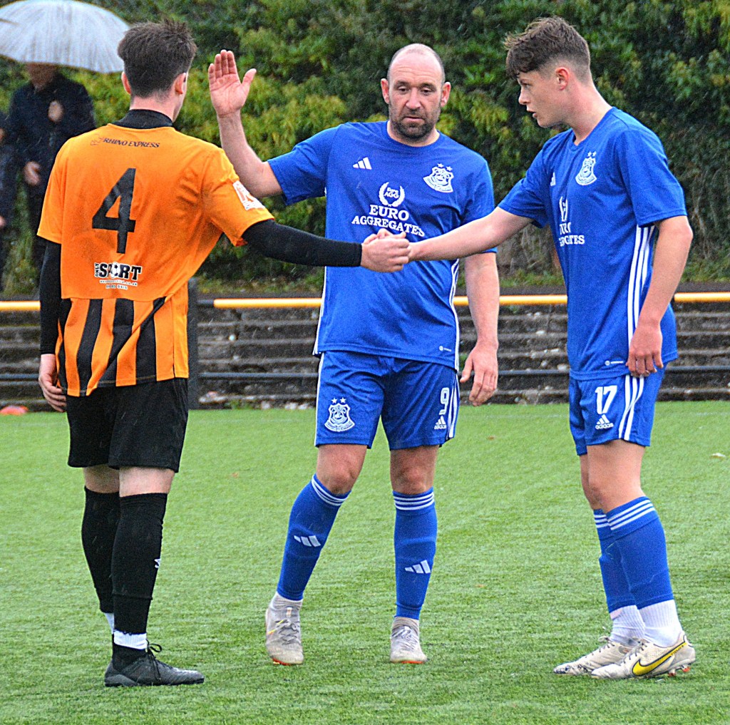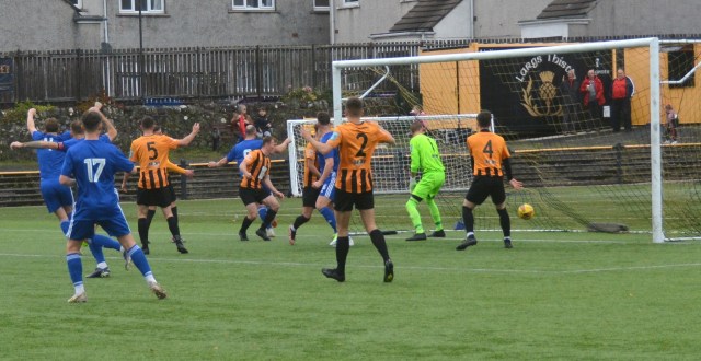 Play was now raging back and forth with Largs still creating the better of the half-chances. Sewell burst down the left to the corner before firing the ball into the six-yard box where Ramsay got a touch to line a shot but McMullin intervene and his header was cleared out the box by McLean.