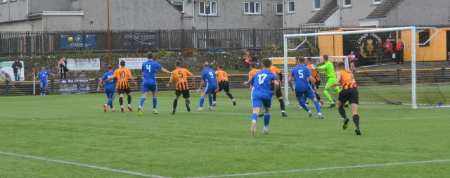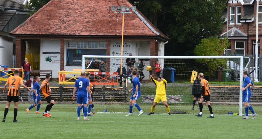 Largs began to get into the game as an attacking force. David Ramsay from wide on the left floated a cross to the back post where Craig Pettigrew headed it clear only for McBryde to trap it on his chest before slipping wide to Ramsay to fire another cross that was deflected wide for a corner which Stuart Faulds clipped to the near post where on this occasion Luke McBeth intervened to head it out the box.