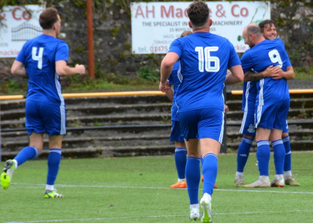 On 93 minutes McCreath and McBeth leapt for the ball and although the Largs man won the contest, he sent the ball back towards his own box where Maxwell on the edge of the ‘D’ stretched his leg to get the slightest of touches to slip it to Alex McWaters on the 18 yard line to hold off McMaster and push forward before drilling a low diagonal shot from 10 yards that went under the keeper’s body and into the net at the near post.