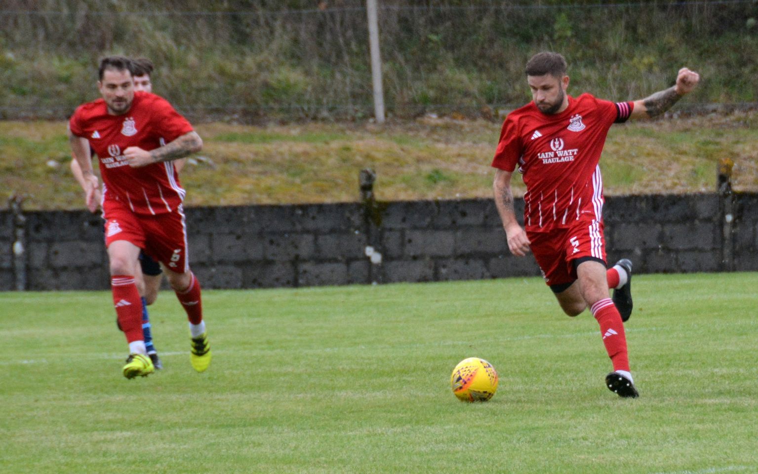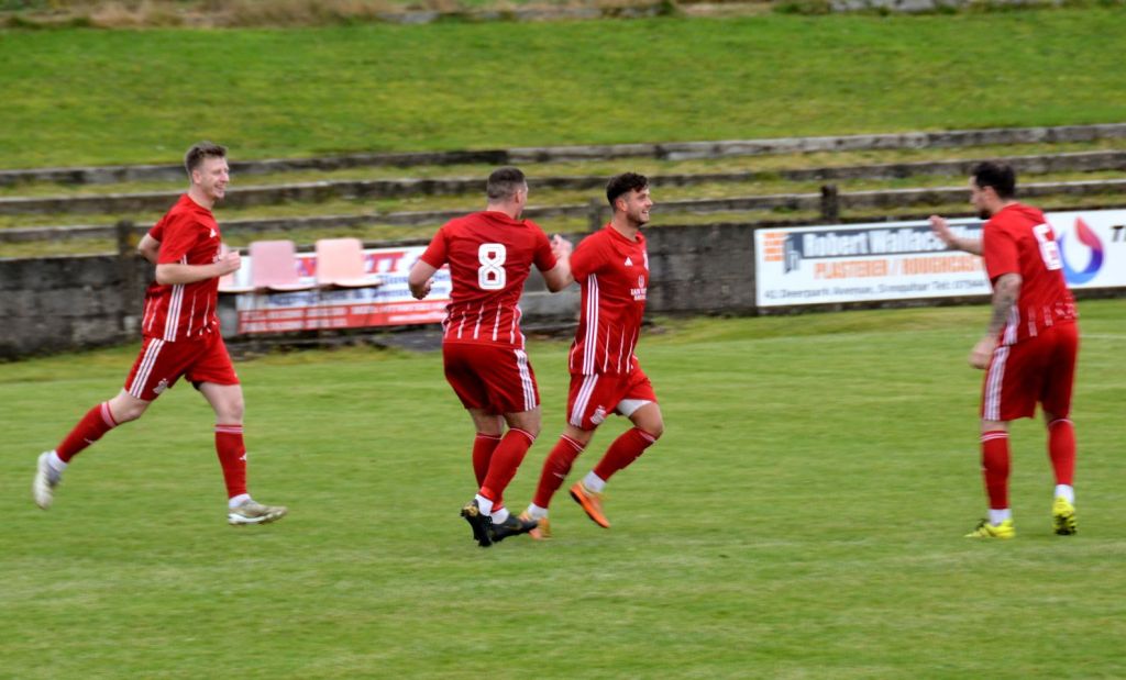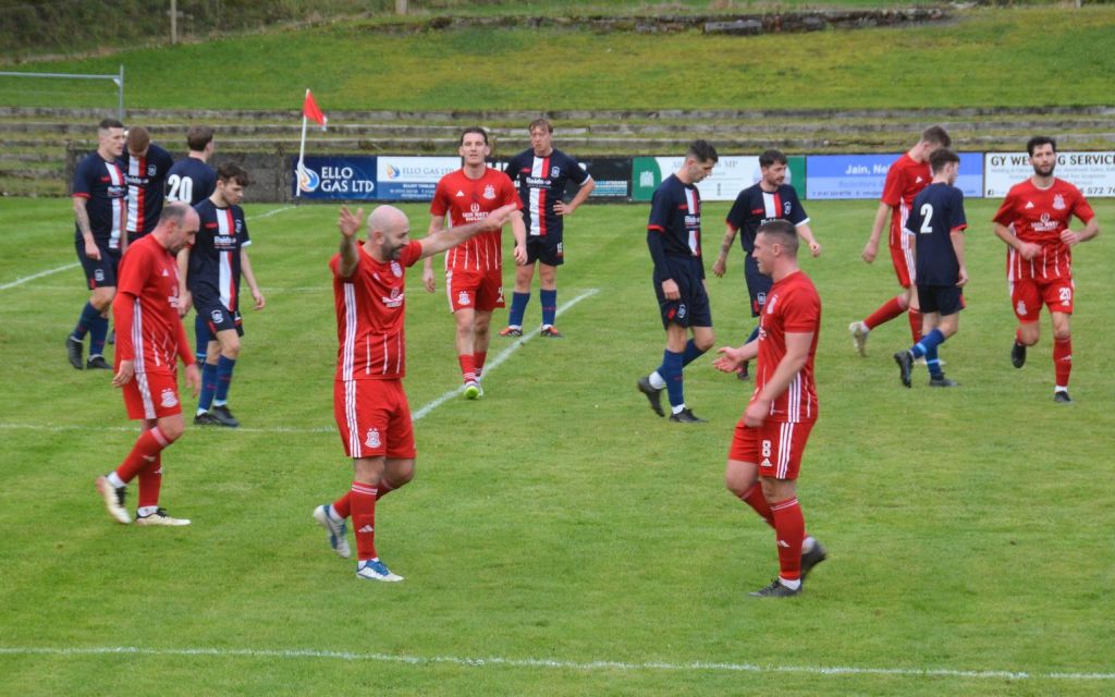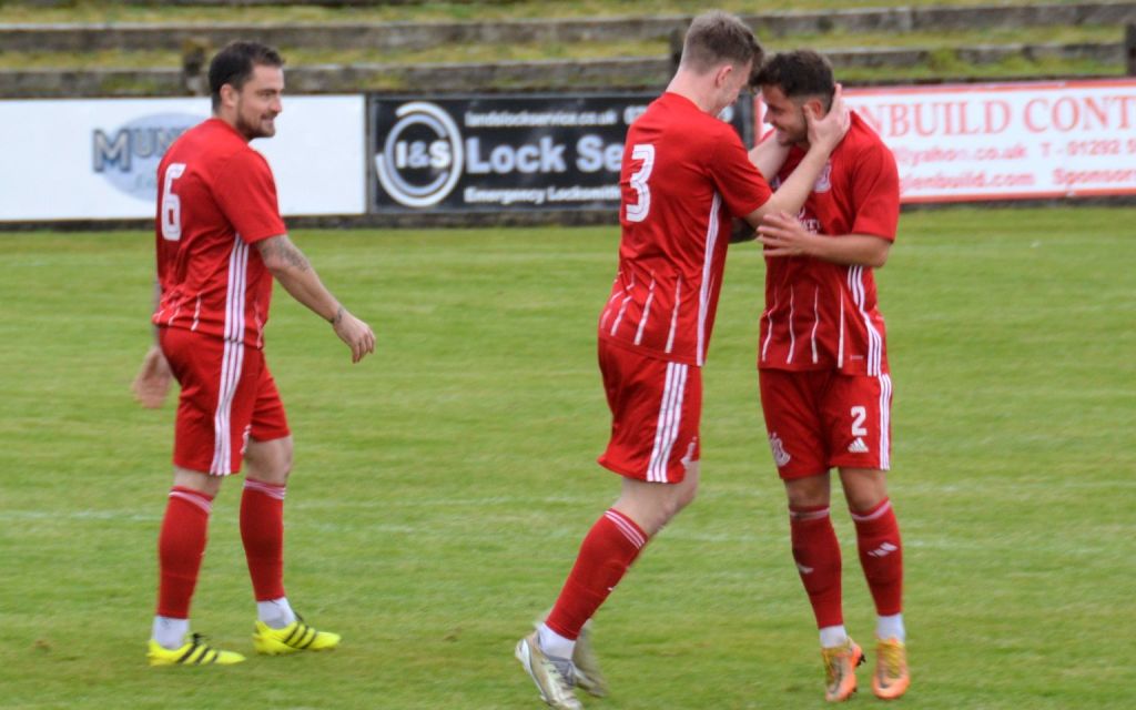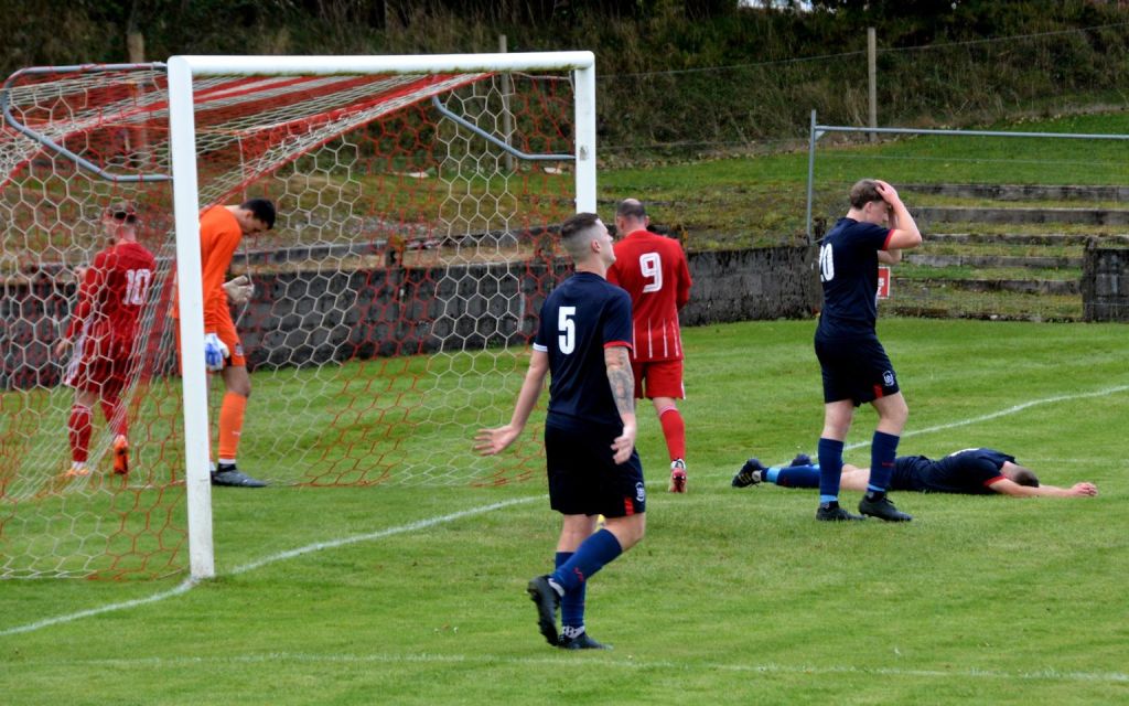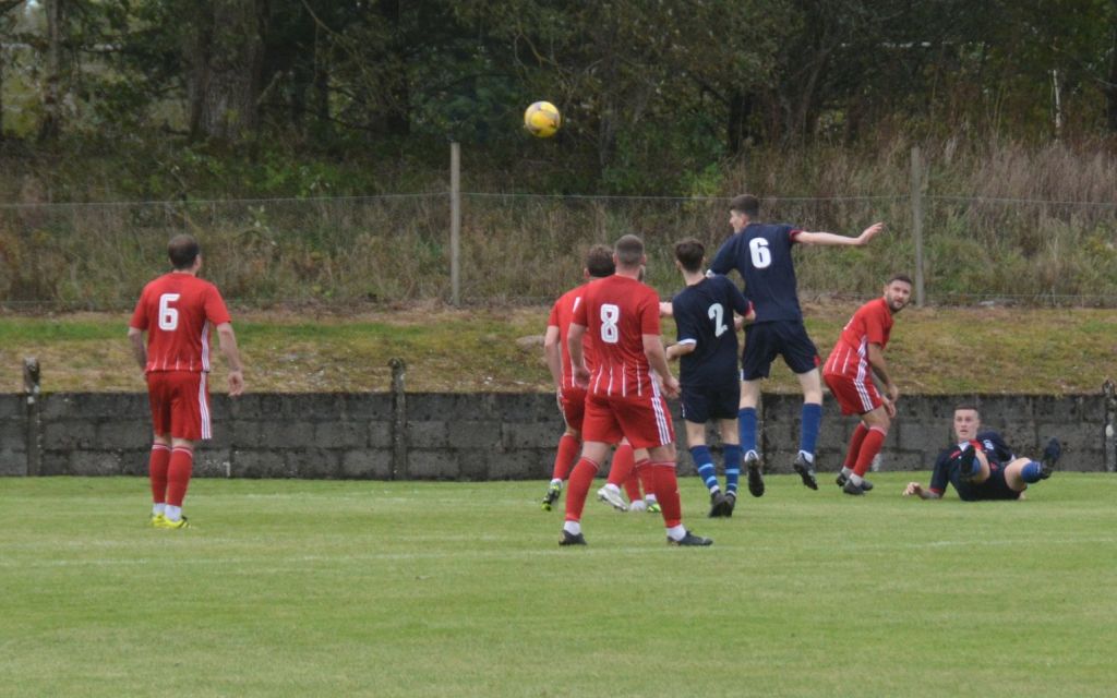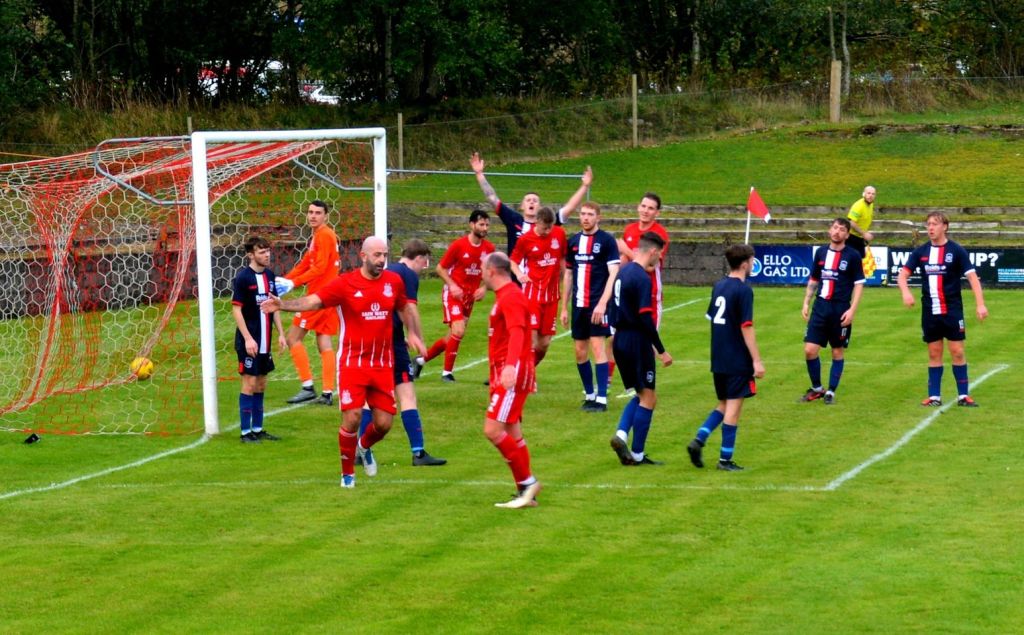 Nevertheless, the home side continued to press and broke the deadlock on 21 minutes. Keeper Derrin Fairns strolled off his line with the ball and passed it to Cameron Fairns at the corner of the box, however he took a bad touch and the alert McLean burst forward to steal the ball and slip it to Michael Moffat to take a good touch on the 18 yard line before casually guiding a well struck shot into the far corner of the net, beyond the back-tracking goalie.