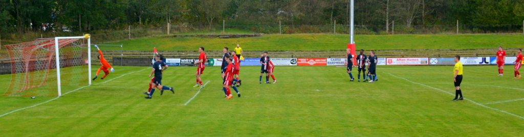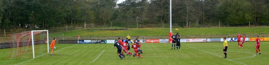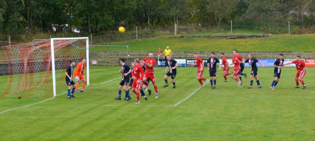 Thoughts of a stress free half-time on the terracing soon evaporated as Dalry struck back in lethal fashion. Mugwanda broke into the left-hand side of the box only for Rowe to strip the ball from his again and the Paton clear it upfield where Cameron Fairns blasted the ball from 25 yards out and although it was always rising Markey had to tip it over the bar. The corner that followed was cleared at the near post by Fraser.