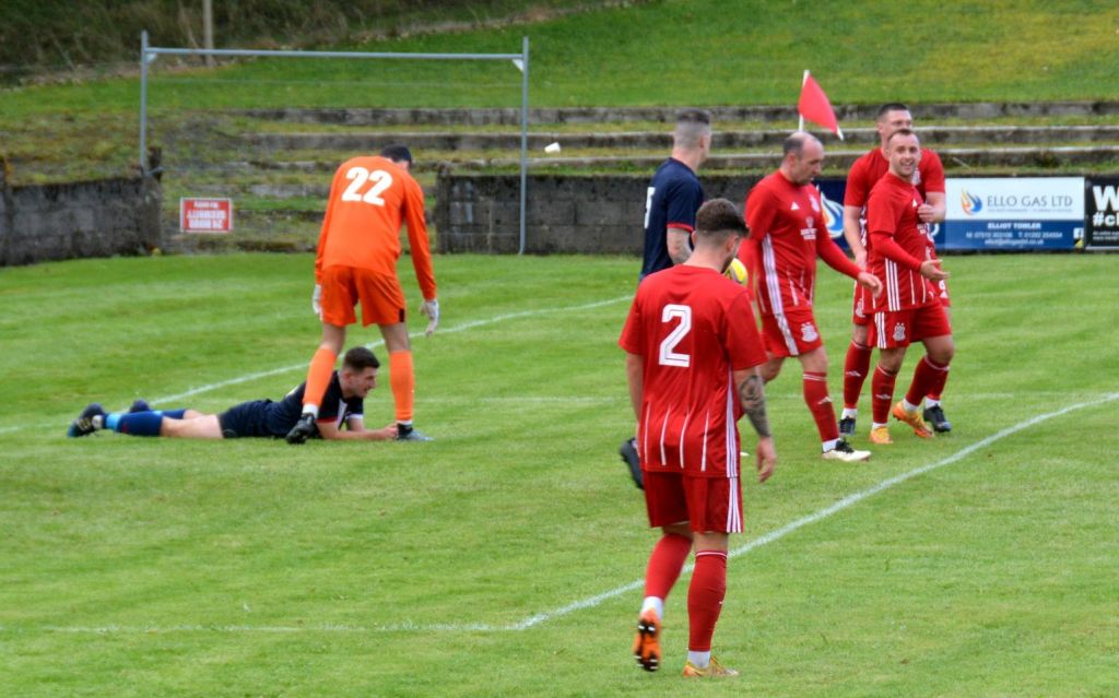 Then into added time Paton from the centre circle fired the ball high into the box where Michael Moffat killed it on his chest before sweeping the ball home to complete the scoring, 7-2 to the Glens.