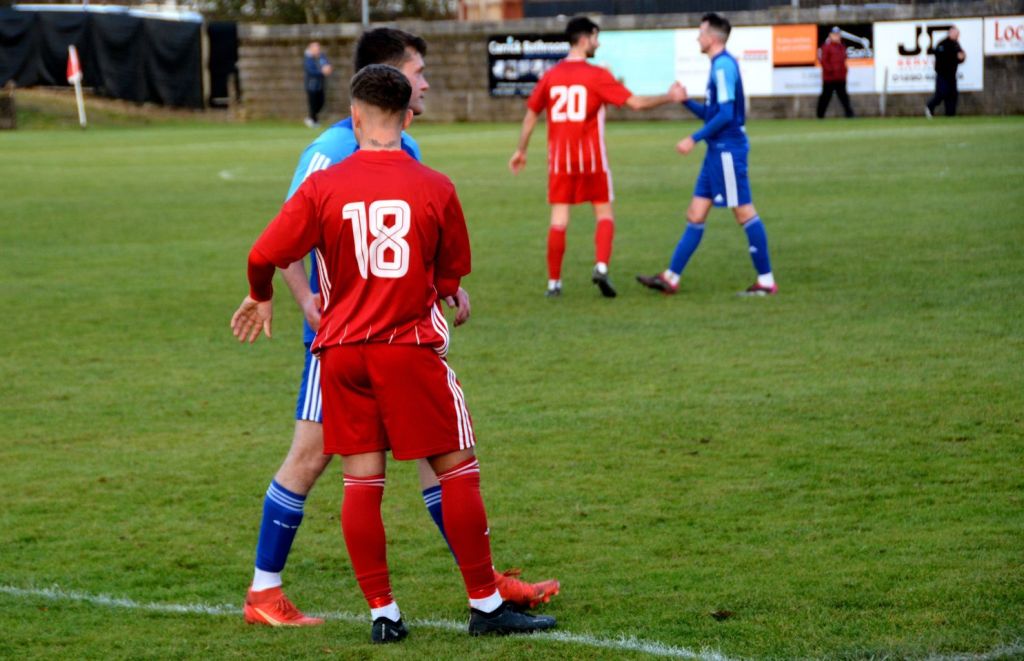 Darvel kicked off and within 5 minutes Glens opened the scoring. Ollie Rowe from inside the Glens penalty box launched a long high ball up the middle for Liam Caddis who won the aerial battle against Stephen Bronsky. He was then initially pulled back by the defender before breaking free and then nudged off the ball at the edge of the ‘D’ before the referee awarded a free kick. Caddis took his place at the left hand side of the Darvel wall as Scott Mclean lined up the kick which he threaded through the space left by Caddis as he broke away and the ball flew into the net at the near post with keeper Andy Leishman rooted on the middle of the goal line.