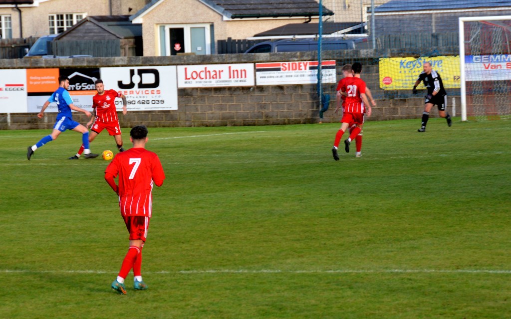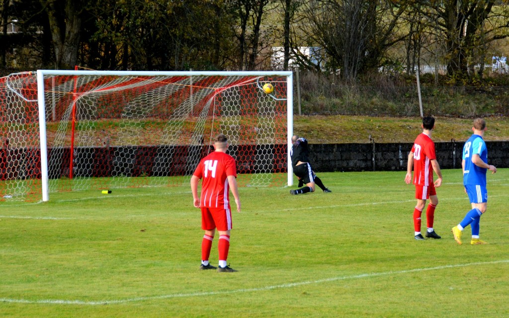 On 84 minutes McLean from just inside the Darvel half floated a free-kick into the box which Moffat killed on his chest before volleying the ball past Leishman only to be flagged offside
