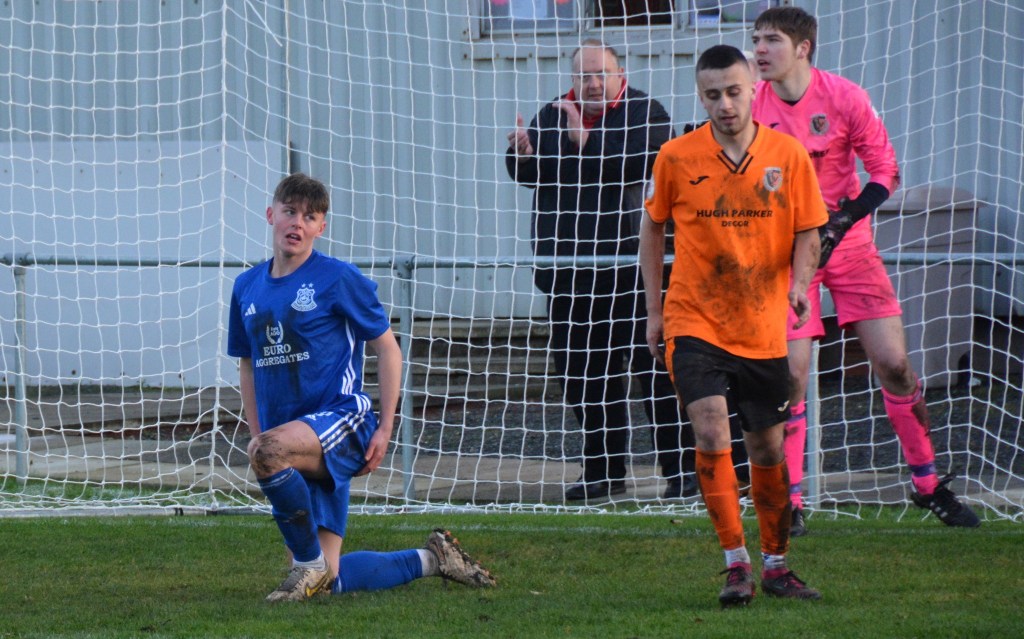 Glens continued to press and doubled their lead on 25 minutes. McLean from wide on the right slipped the ball down the touchline for Moffat to whip a ball into the six-yard box where McWaters, with Calum Irvine tight on his back, took a great touch to angle a shot goalward and although keeper Wilson blocked it on the line, Liam Caddis was on hand to stroke the ball into the empty net.