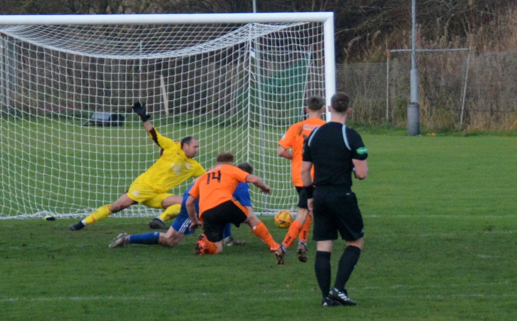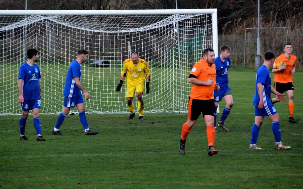 It was the visitors that were first to threaten after Fraser nicked the ball from the feet of Strain before thundering a shot from 25 yards that crashed off the bar sending the ball soaring high into the sky to be retrieved by McBeth who played a one-two with McKee on the left before switching play to Rowe on the right to slip ball to McLean who jinked past two orange shirts before slotting ball into the box for Caddis to chase down and crack a shot from the corner of the 6 yard box only for Wilson to make another fine save with an outstretched leg and David Smith mopped up the loose ball.