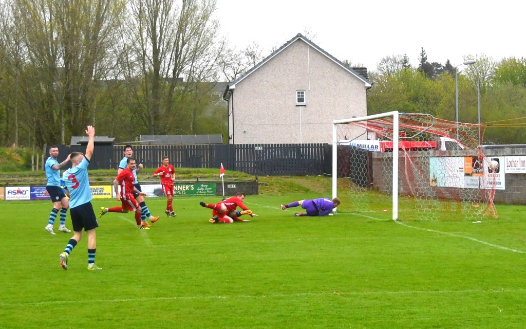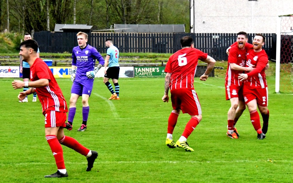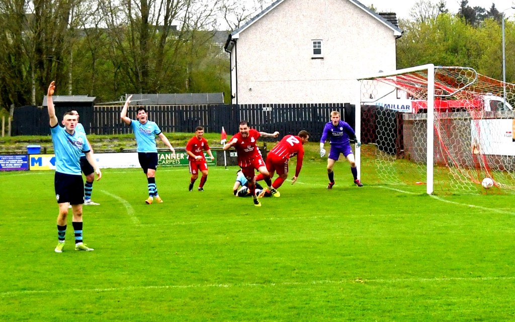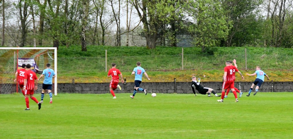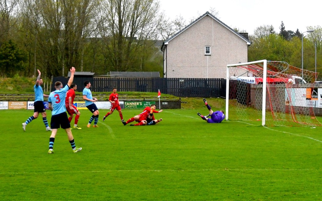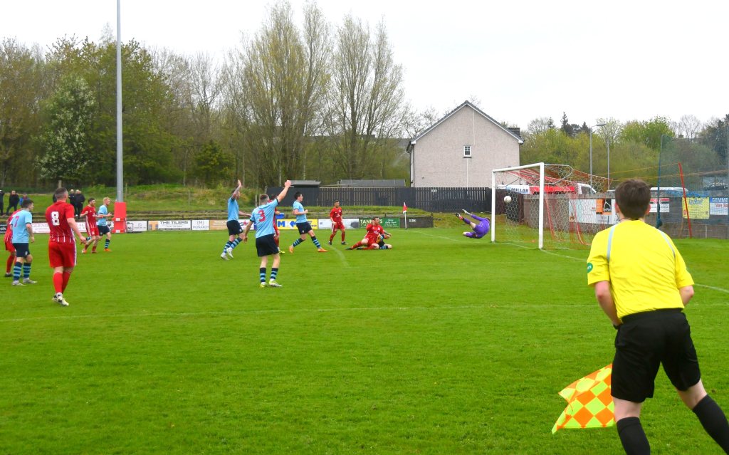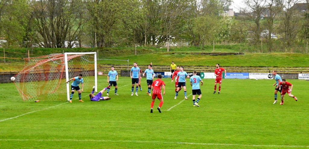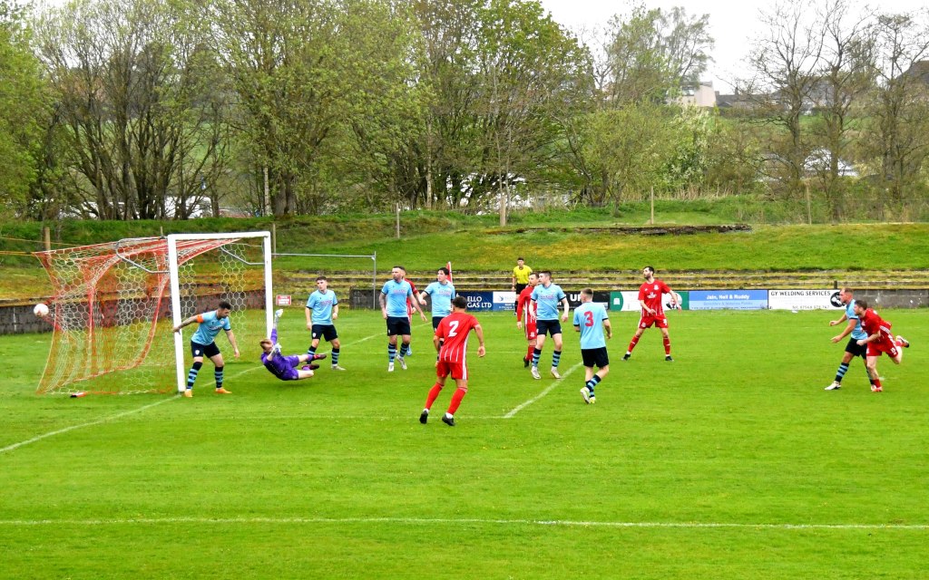 On 76 minutes Rob Roy halved the deficit after the ball was launched up the park where the lively No. 15 gathered it at the edge of the box before slipping a forward pass to No 17 to draw Semple off his line before drilling a low shot from a tight angle and beyond the reach of the back-tracking Glens defenders to nestle in the far corner of the net.