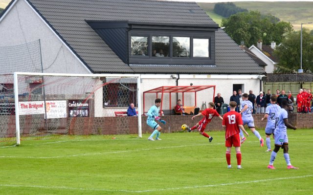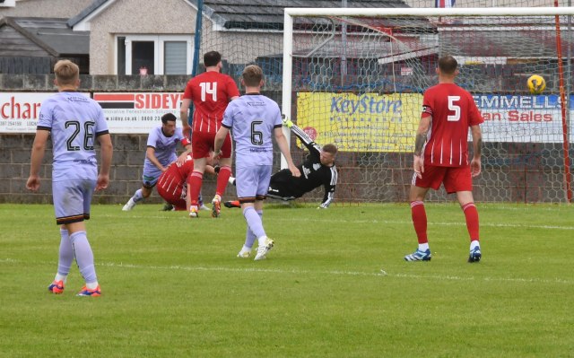 On 11 minutes the visitors doubled their lead with Williams from the right-hand corner of the box floating a perfectly weighted ball to the back post for Brian Graham to get the jump on Lyall Holding and another downward header the bounced over the diving Semple.