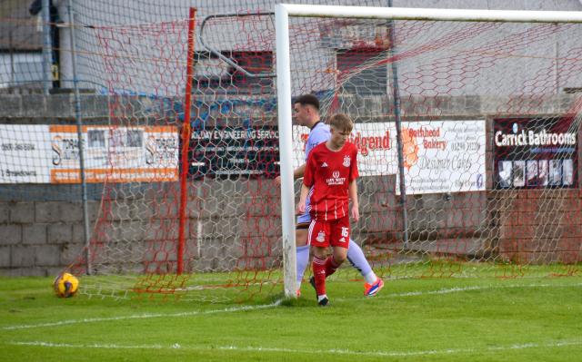 Glens mopped up another attack and Pettigrew played the ball out to Currie on the left who quickly picked out Armand Dollani on the half-way line to switch the play to Holding breaking up the right flank to float a ball where Shuggy Kerr leapt between Luke McBeth and Aaron Muirhead to flash a header dipped over the junction of the far post and bar.