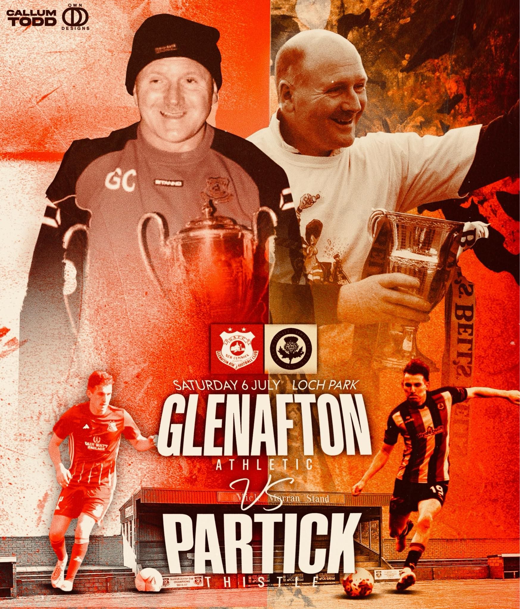 Glenafton were delighted to welcome Partick Thistle to Loch Park today and to meet up again with former player Luke McBeth who clearly has made a great impression on the Harry Wraggs! Of course, Thistle’s manager Kris Doolan was no stranger to Loch Park, having starred for neighbours Kello Rovers and Auchinleck Talbot. Before kick-off both clubs and their supporters joined together for a minute’s applause in memory of the late Gerry Collins.