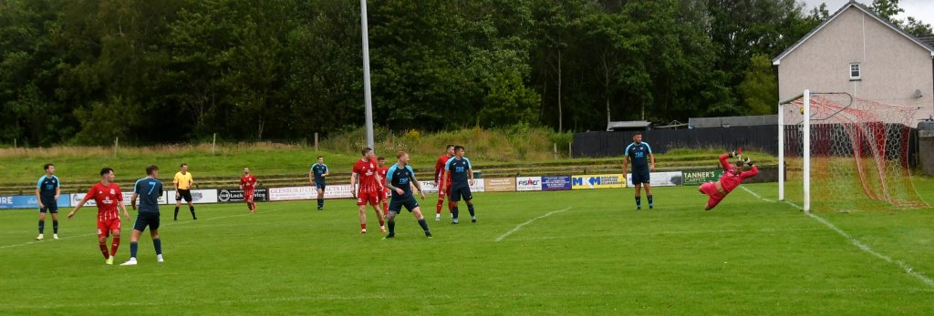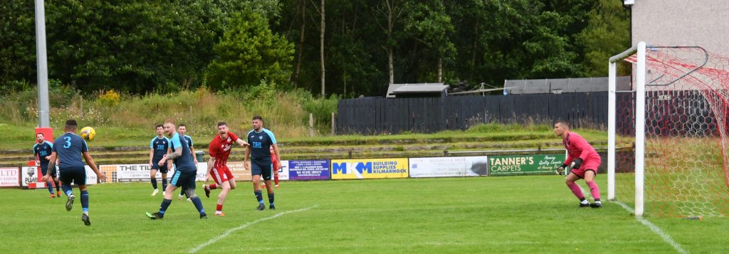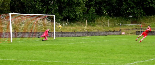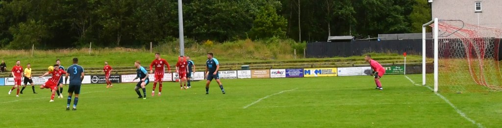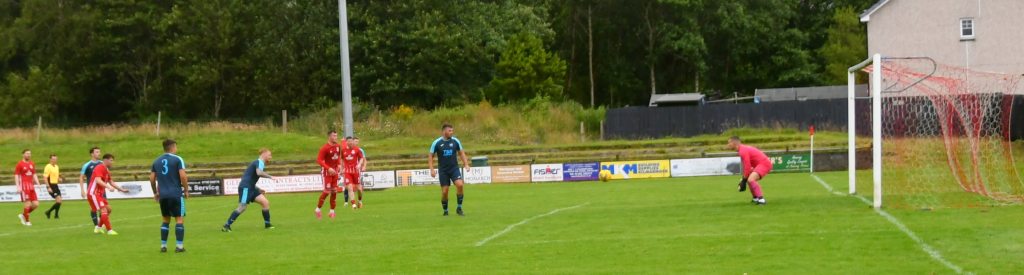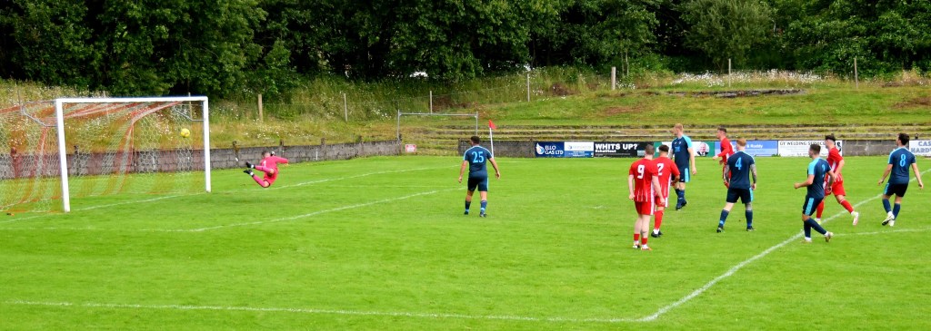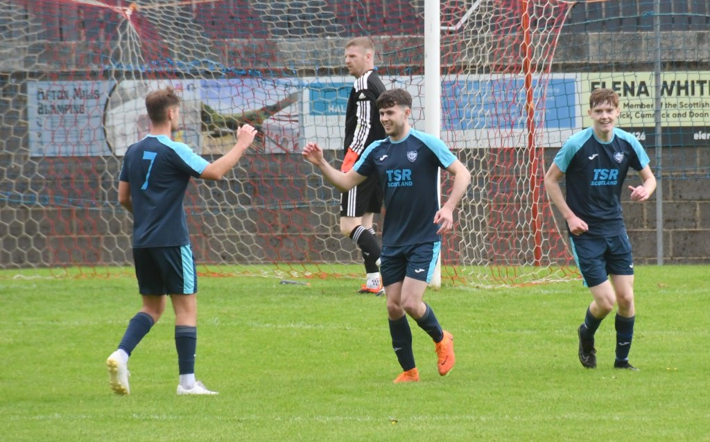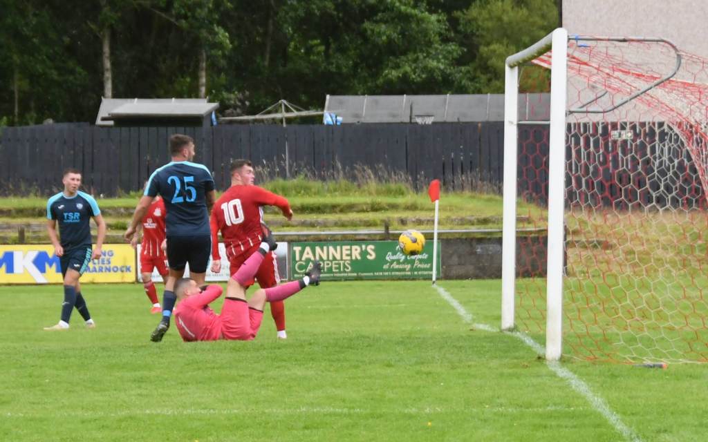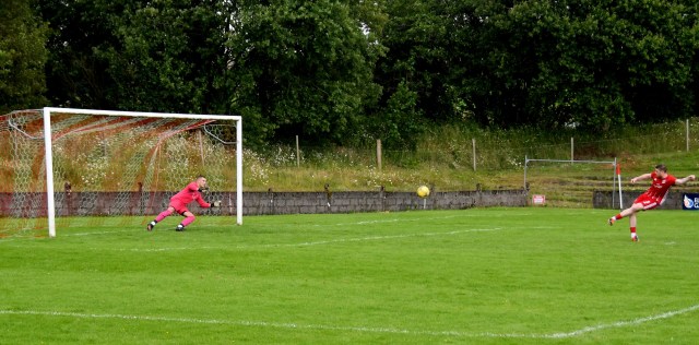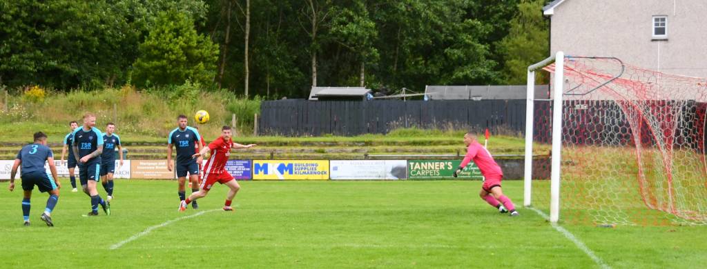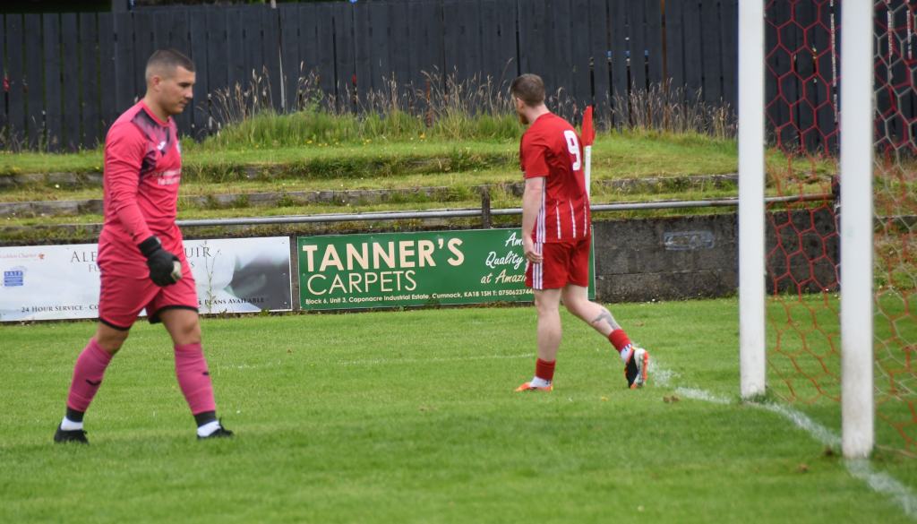Glenafton got off to a flying start after winning a corner on the left. Evan Maley drilled the ball low into the box towards the penalty spot for Shuggy Kerr only for the centre-back to clip his heels. Kerr picked himself and slammed home the spot-kick on 4 minutes.
