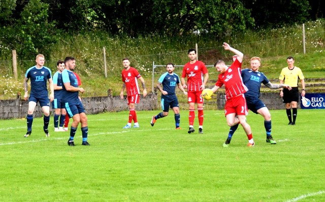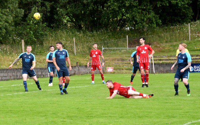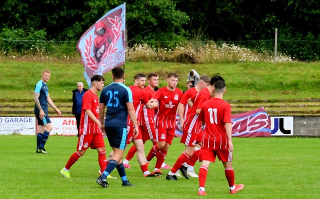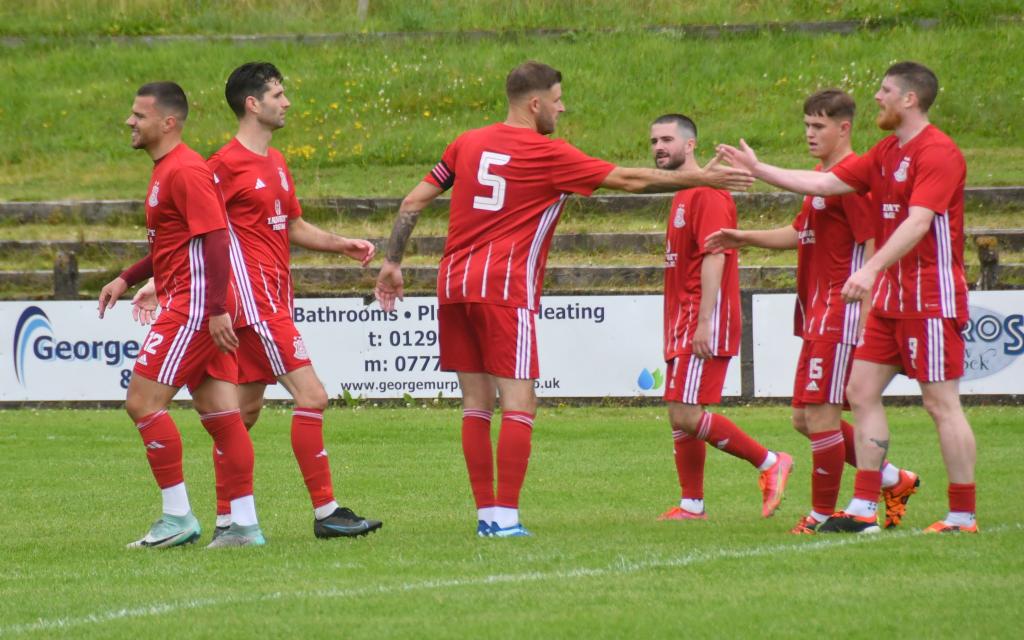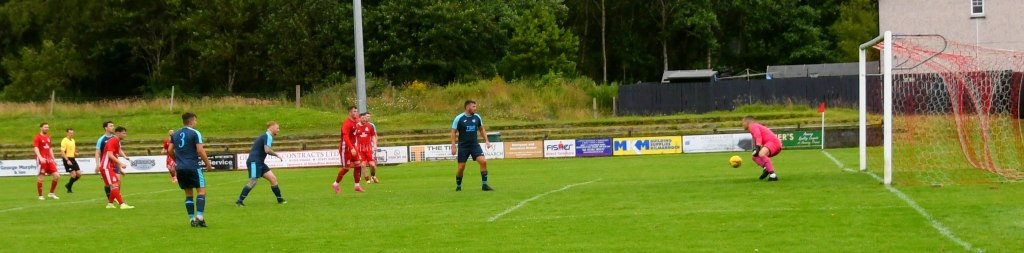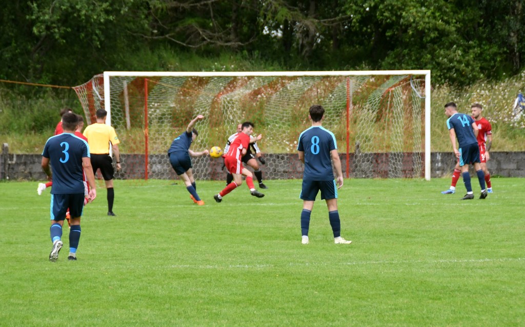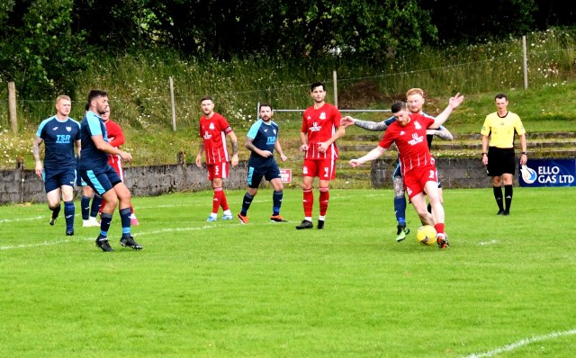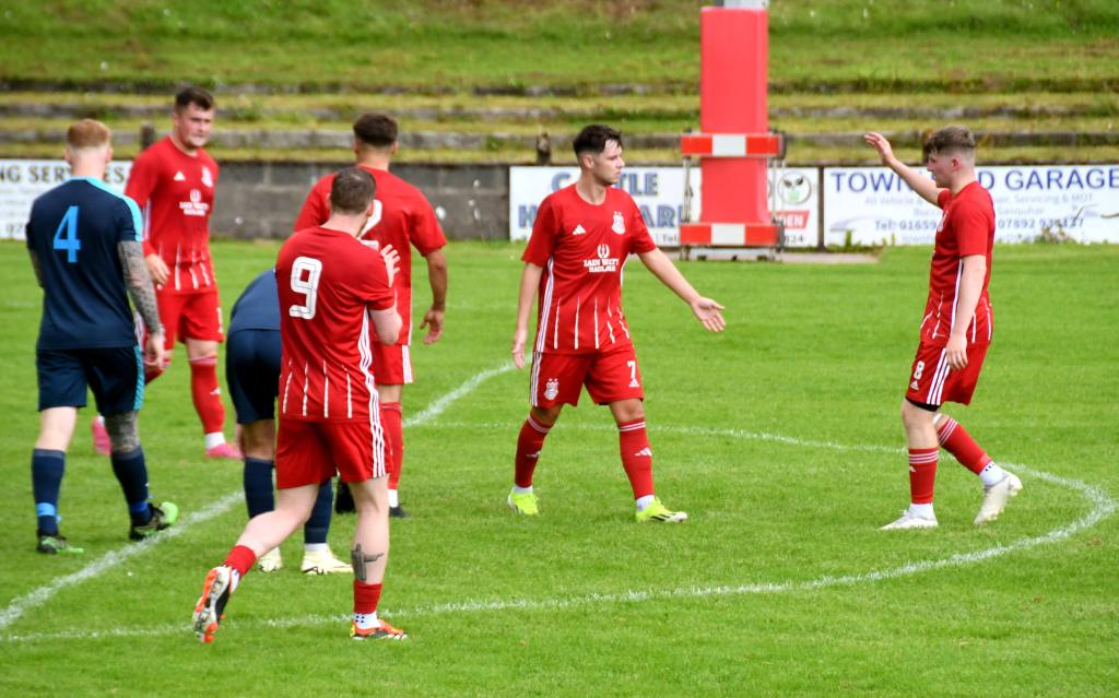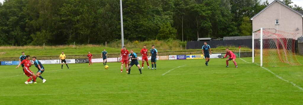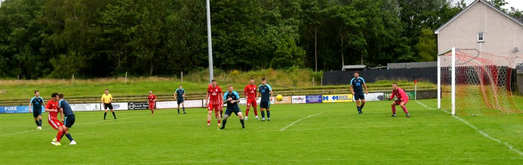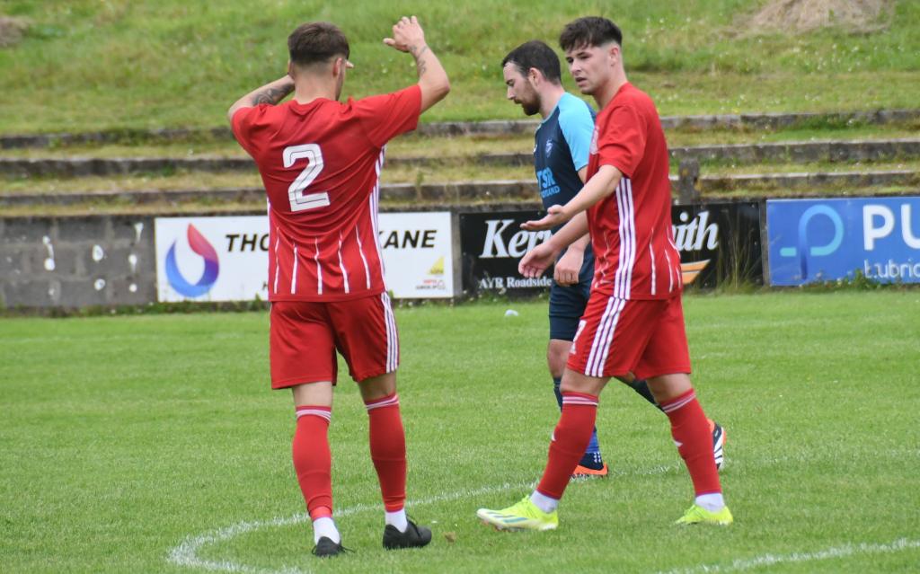 Glenafton got off to a flying start after winning a corner on the left. Evan Maley drilled the ball low into the box towards the penalty spot for Shuggy Kerr only for the centre-back to clip his heels. Kerr picked himself and slammed home the spot-kick on 4 minutes.