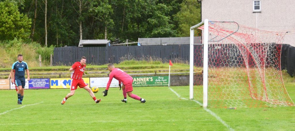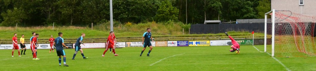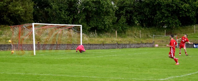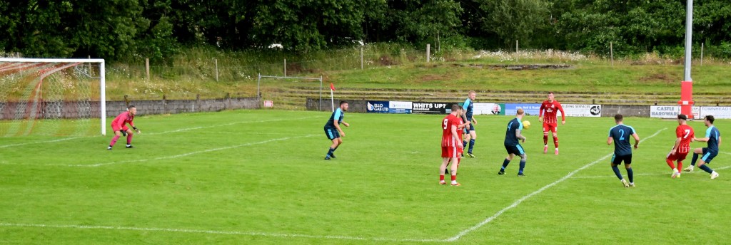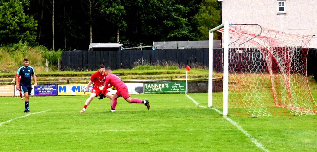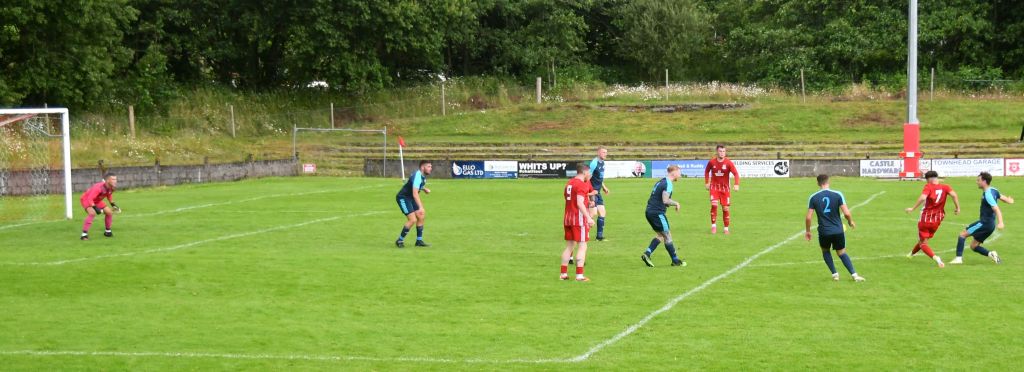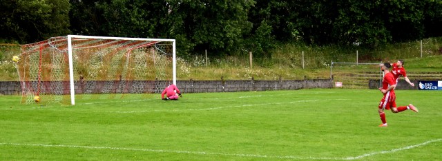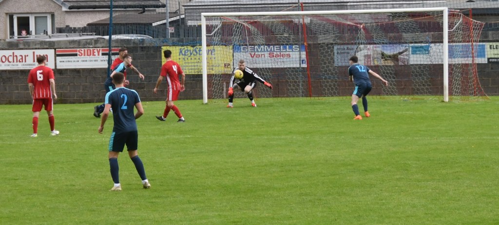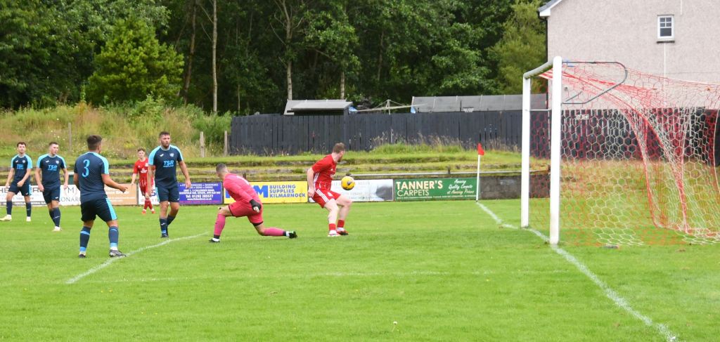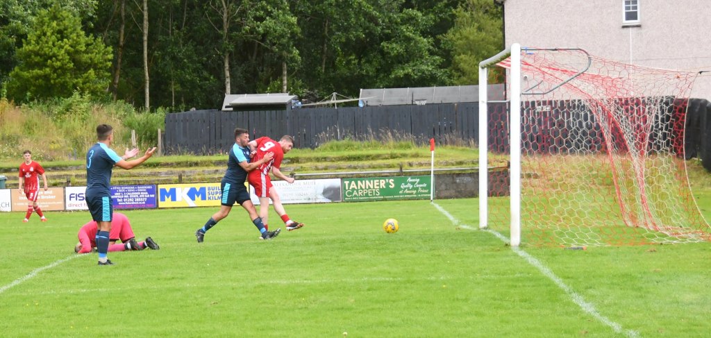 Two minutes later Glenafton struck again. Ross Lindsay gathered the ball on the left and picked out Kerr in a busy Boswell box before breaking to the edge of the box to collect the return pass and feed Mullen deep in the box who knocked it back to Sam McKee to smash a low volley from 17 yards out and although the keeper looked to have it covered it slipped through his hands and into net.