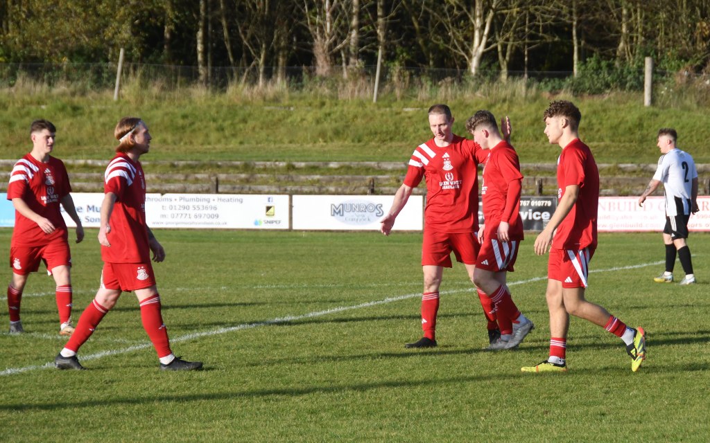 On 15 minutes Glenafton broke the deadlock after a spell of pressure in and around a busy box the ball fell for Ross Lindsay in the ’D’ who picked out McKee wide on the left-hand side of the box who quickly clipped a perfectly weighted ball over the head of the keeper to the back post for Michael Mullen to nod it home from a yard out.
