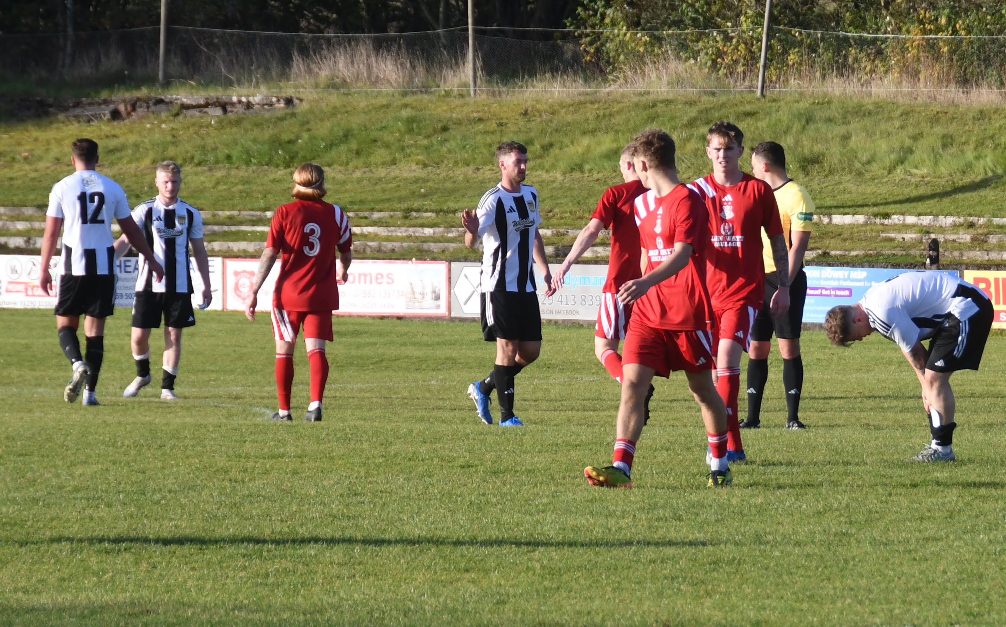 A lower key start to this half with play going back and forth with the best chance falling to the visitors No. 9 however his close range shot at goal lacked the power to trouble Semple.