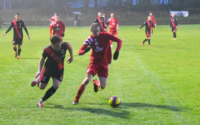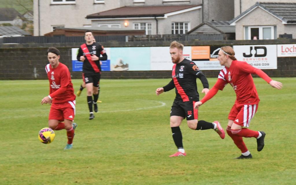 Glens countered as Erskine outjumped McHugh to flick on a header for Mullen to gather and drive to the outskirts of the ‘D’ before slipping the ball to Erskine on the edge of the box from where he rolled it back to Evan Malley to drill a low shot from 25 yards out, this too drifted wide of the left post.
