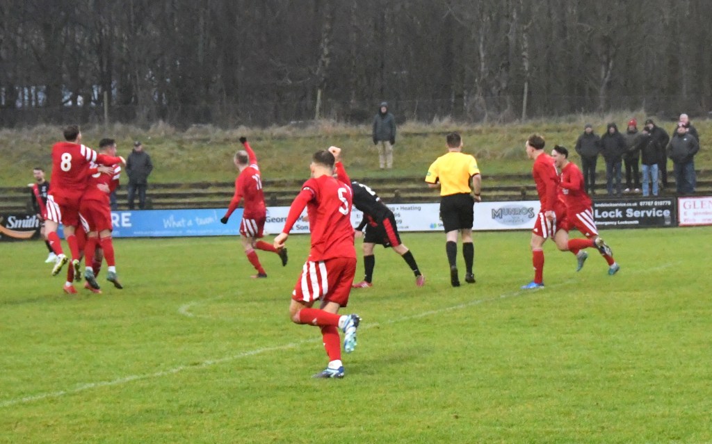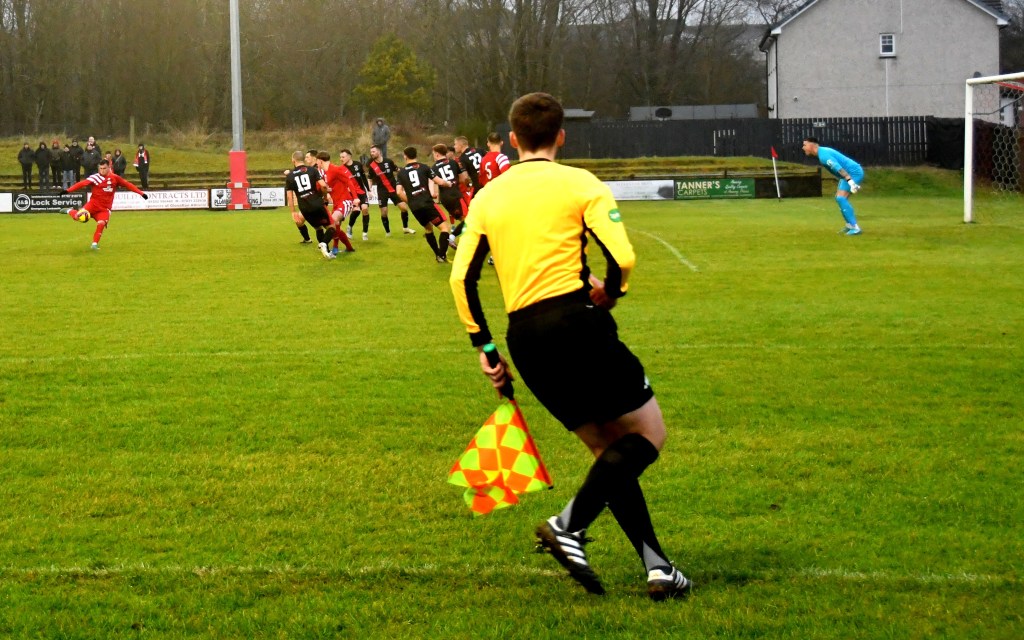 Glens were first to show as Michael Mullen forced his way into the Bankies box and although surrounded by a clutch of defenders he got a shot away which was comfortably saved by keeper Andy Leishman. Soon after Chris Erskine burst through the middle only to be pulled back by Davie Syme and Mullen’s free-kick trundled wide of the right post.