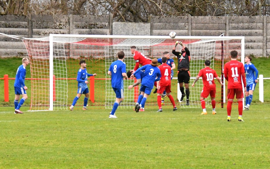 From the kick-off, Burgh quickly broke upfield with Max Kerr breaking into the left hand side of the box before squaring the ball to Mason to drill a low shot that Markey blocked with his feet and the rebound was cleared.
