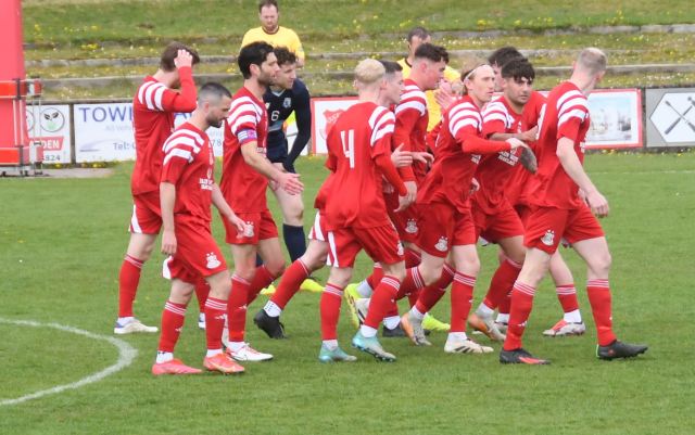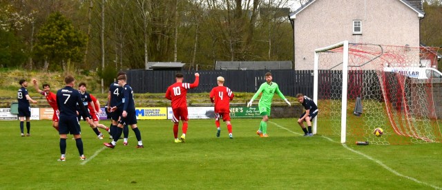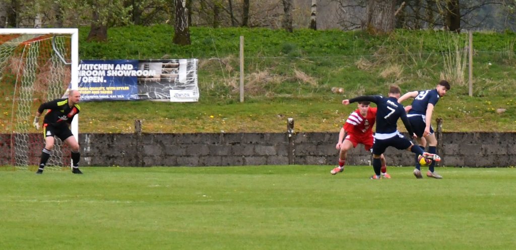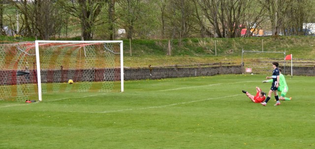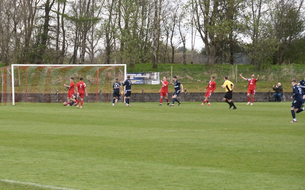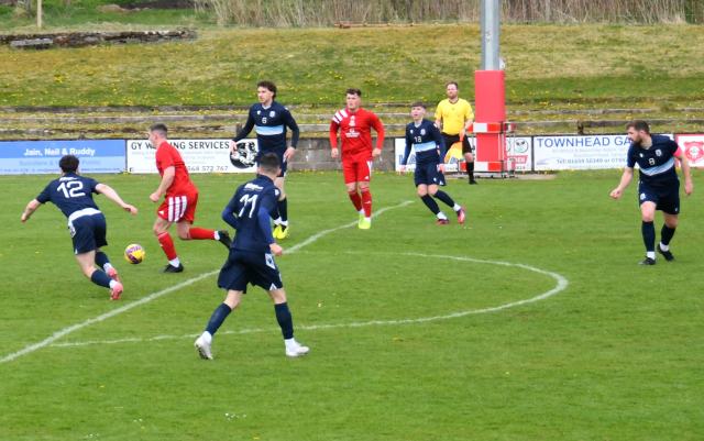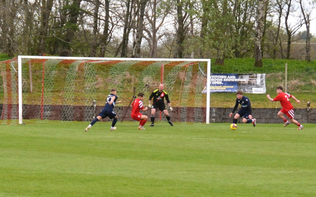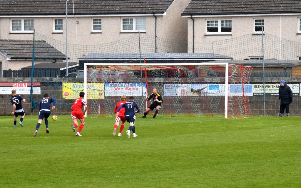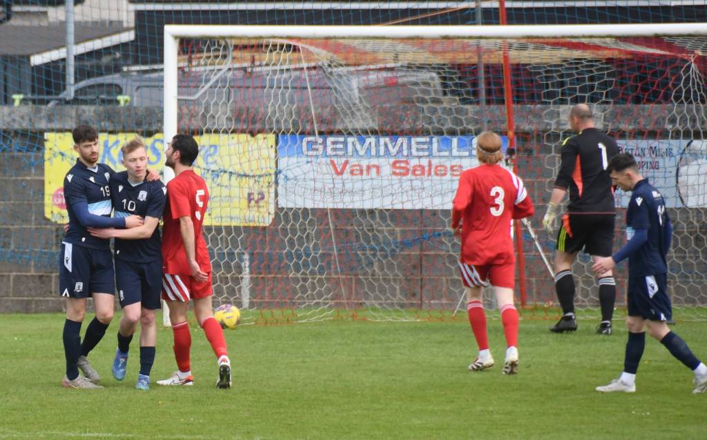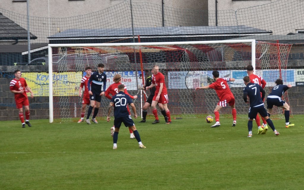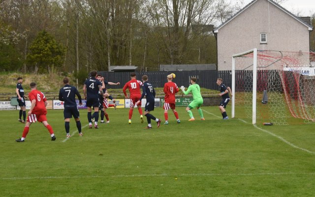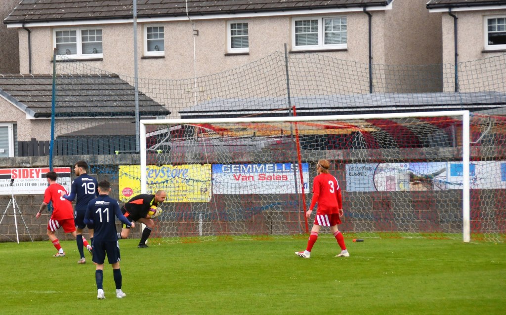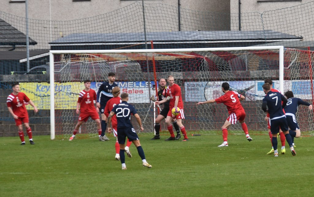 Glens countered with McCubbin winning a corner-kick on the right that was plucked out the air by keeper Cowie who then launched the ball upfield to mount another attack for the visitors. Back came Glens with Mullen breaking into the left-hand side of the box on a couple of occasions but ‘long-throw specialist’ Clarke foiled him with well time tackles.