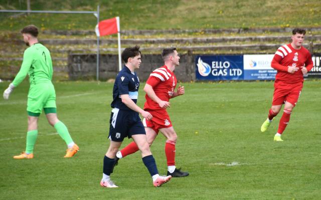 Play raged back and forward as both sides went in search of a winner and the in the closing minutes Gartcairn heaped the pressure creating a number of chances. Jordan Moore lashed a low angled shot from deep in the box that whizzed wide of the near post. Later the striker burst between Willet and Craig before blasting a low shot from the edge of the box that Markey got down low to push the ball wide of the post.