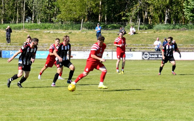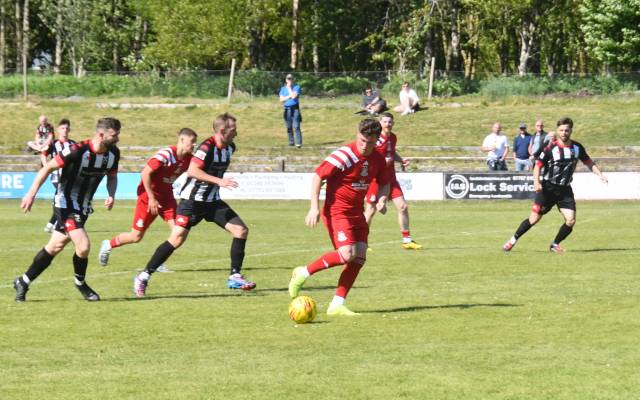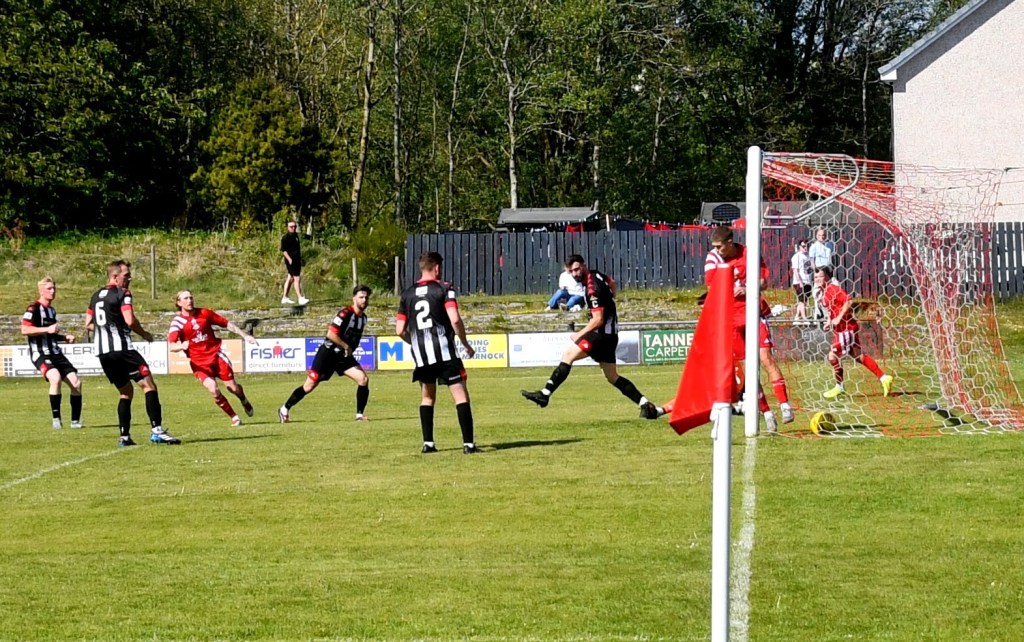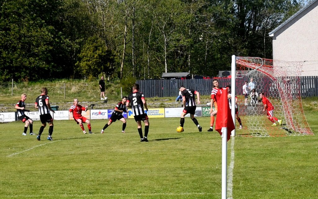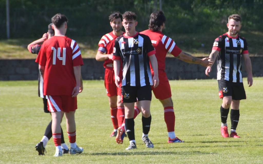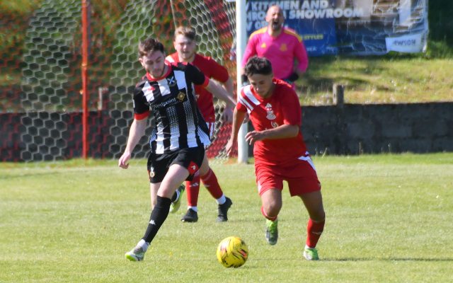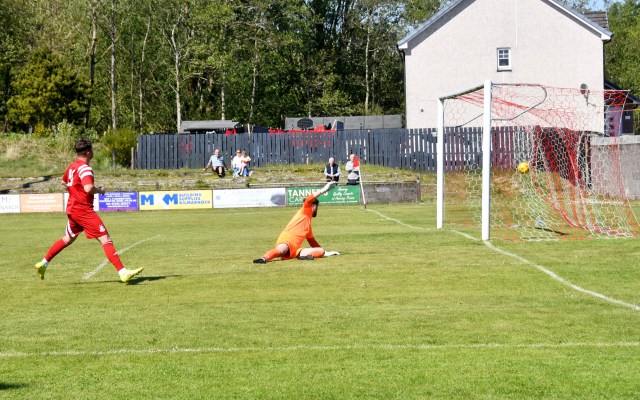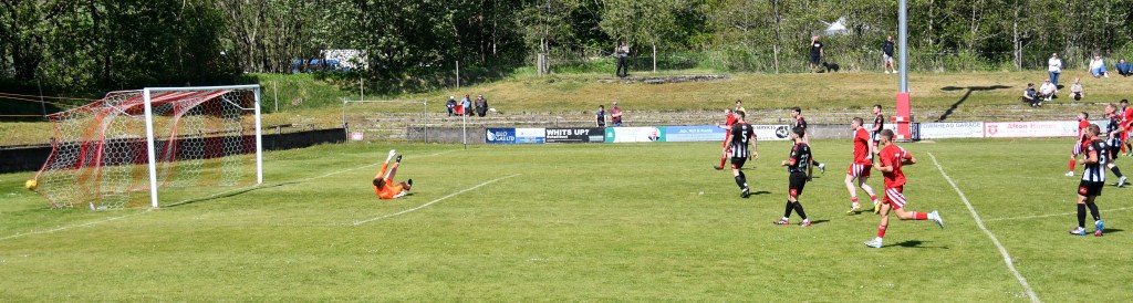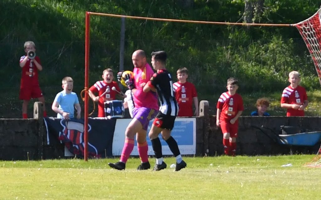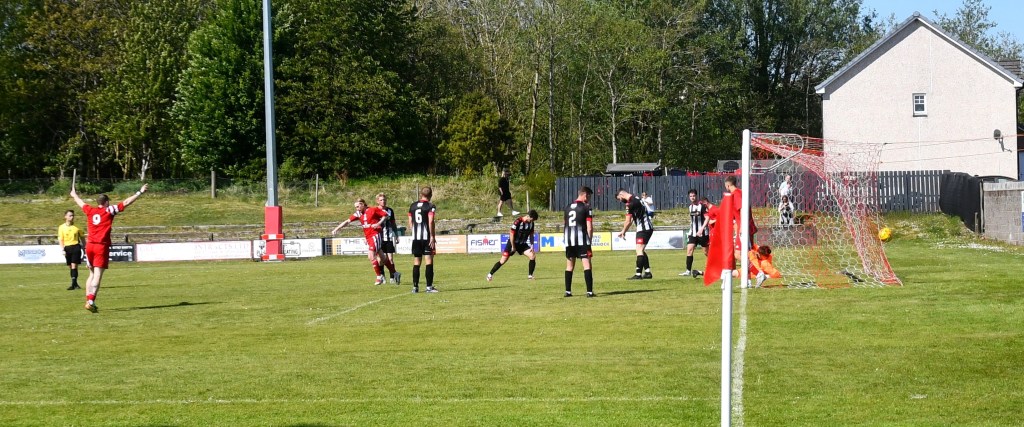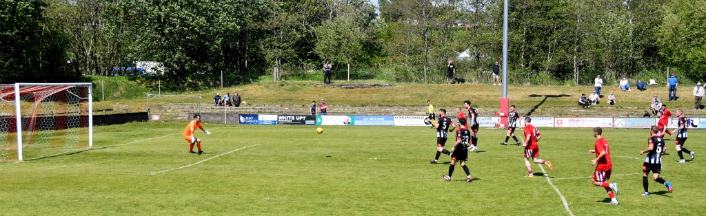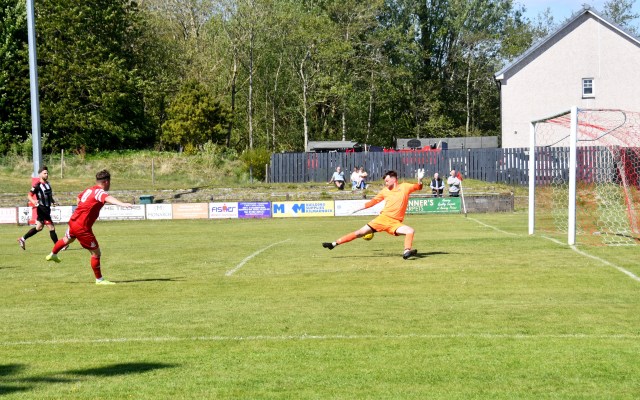 On the hour mark Allan, from tight on the left, clipped the ball forward to Kerr who in turn rolled the ball into the box for Craig to chase and with Calum Gow on his heels, the young midfielder drilled a low angled shot that keeper Truesdale did well to get down at the corner of the six-yard box and push it wide to his left and cleared by Forrester as Mullen threatened. The home side continued to press and Willet’s lob from the edge of the box flew high over the bar.