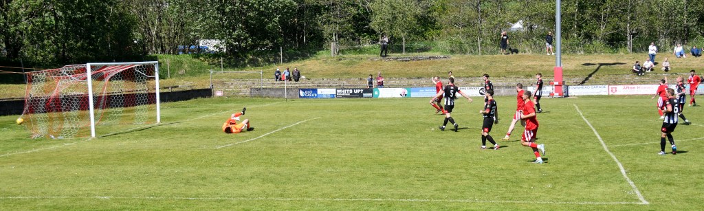 Glens countered in lethal fashions as Mullen burst into the left hand side of the box only for his cut-back from the goal-line for the inrushing Craig to be intercepted by Gow before the alert Jared Willet pounced to drill the loose ball from the corner of the six yard through a ruck of players and into the net. Glens 4 Pollok 0, 87 minutes.