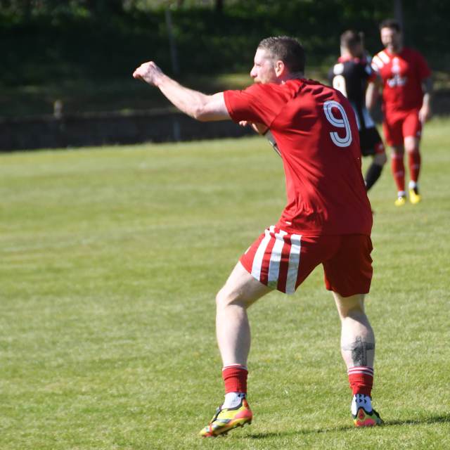 Pollok mustered a couple of attacks including one up the left that backfired after Maley forced substitute Liam Lapsley to roll the ball back to Duncanson only for McKee to divert it into the path of Kerr on the half-way line and gather the one-two before slotting it forward for Craig who skipped past the back-tracking Lapsley before stroking a glorious long ball into the right hand side of the box for Kerr to burst in from the wing and beat Duncanson to the ball just short of the by-line and after a quick turn lashed the ball from the corner of the six yard box into the far side of the net. Glens 3 Pollok 0, 72 minutes.
