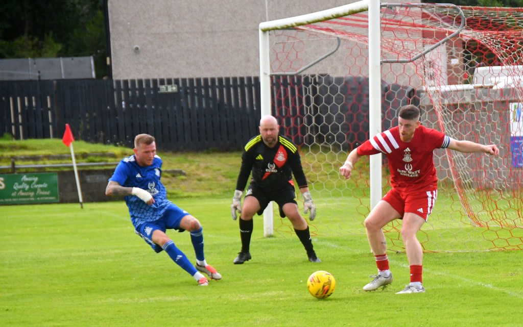 At the other end Findlay Fry drilled a low ball from the left-hand corner of the box for Dale Moore only for his shot to be blocked by Jared Willet sending the ball high into the air and gathered by keeper David Markey.