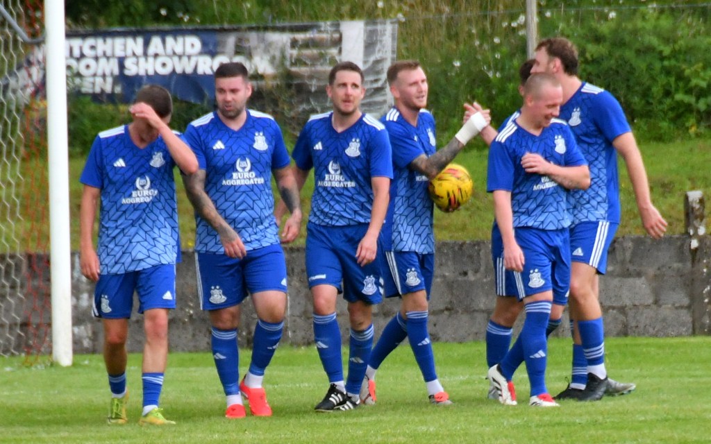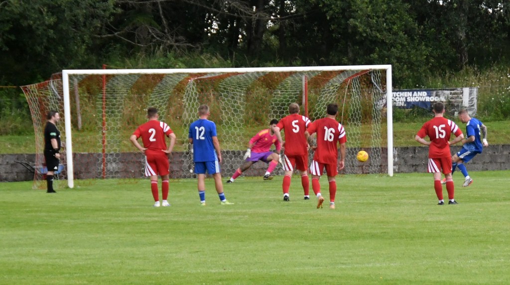 Sadly on 4 minutes Conor Lynass suffered a shoulder injury. Ally Park (just retired from Maybole) switched to his position while substitute Jamie McGeoghan came on to fill the right back slot.