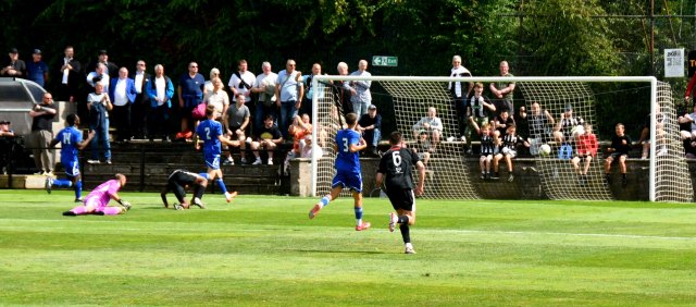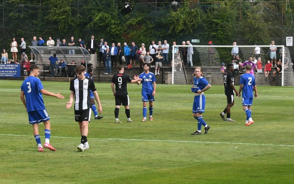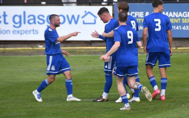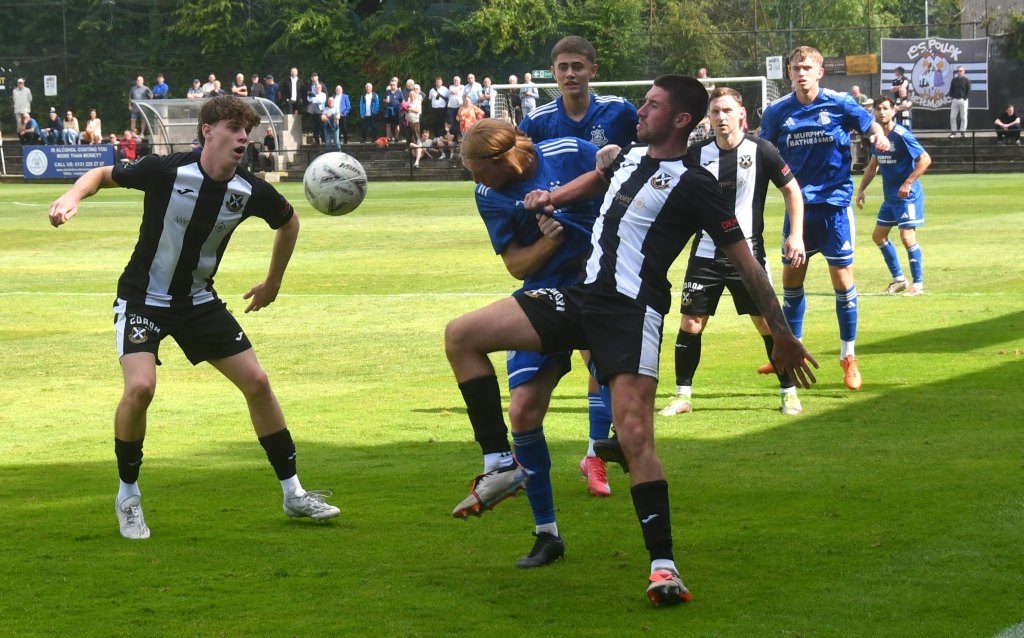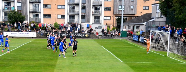 Pollok then enjoyed a good spell pressure beginning with Jordan Leydon from inside in his own half launching a high ball into the right-hand side of the box for Jake Stirling to chase and although David Craig beat him to the ball his header back to keeper David Markey fell short allowing Stirling to shoot at goal only for the outrushing keeper to block and Craig pounce on the rebound and clear it upfield.