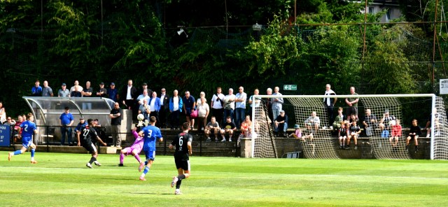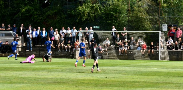 The momentum changed as Pollok turned up the heat in search of an equaliser on a glorious sunny day. Leydon clipped the corner from the left to the near post for Henry only for the ball to take a bounce into the goalmouth where the Trialist looked to chest the ball home from a few yards out only for Duncanson to get a boot to the ball and send it over the bar.