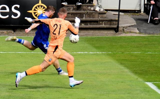At the other end Lindsay, from wide on the left, whipped a free kick into a busy box for Kerr and Lewis Currie to challenge only for Henry to get a toe to it and send the ball back across the face of the goal and out for a shy close to the corner flag. Craig’s short throw was gathered by Lindsay to clip the ball to Kerr on the penalty spot only for his shot to bounce off Scott and resulted in a stramash in and about the six-yard box with Mullen’s claim off being pushed by Stirling waved away.
