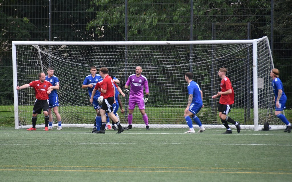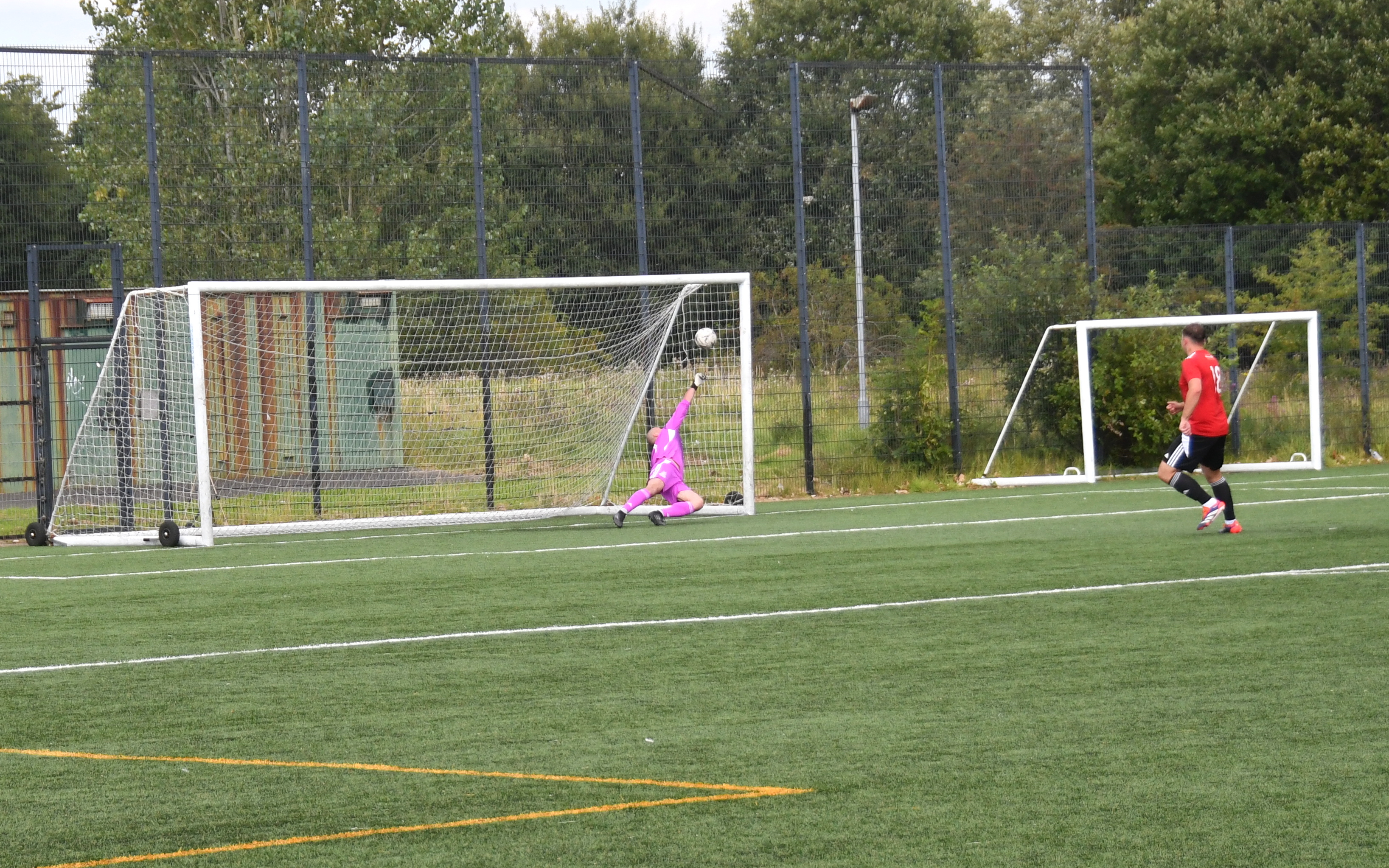 McFadyen gathered the ball on the outskirts of the box and picked out Ross on the right to burst into the box to drive a low shot that drifted wide of the back post. Soon after, McFadyen gathered a pass from Wilson, took a couple of touches before thumping a shot from 25 yards that took a slight deflection off a defender while the keeper saw the ball late and could only look on as it sneaked inches wide of the post.