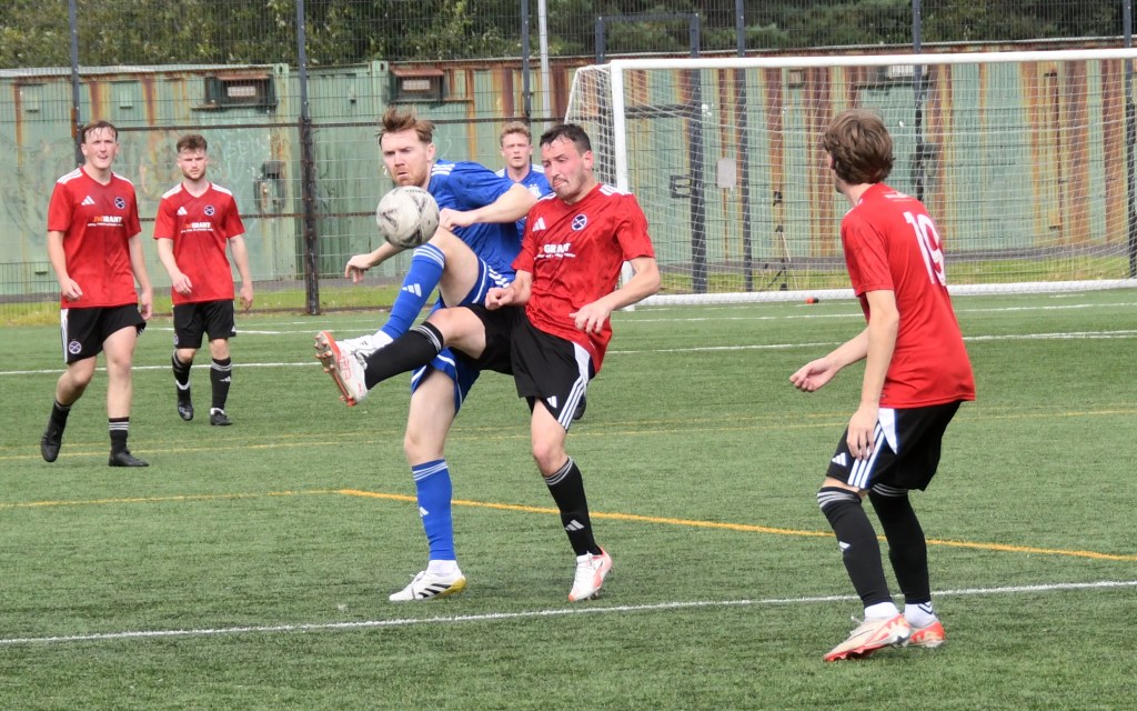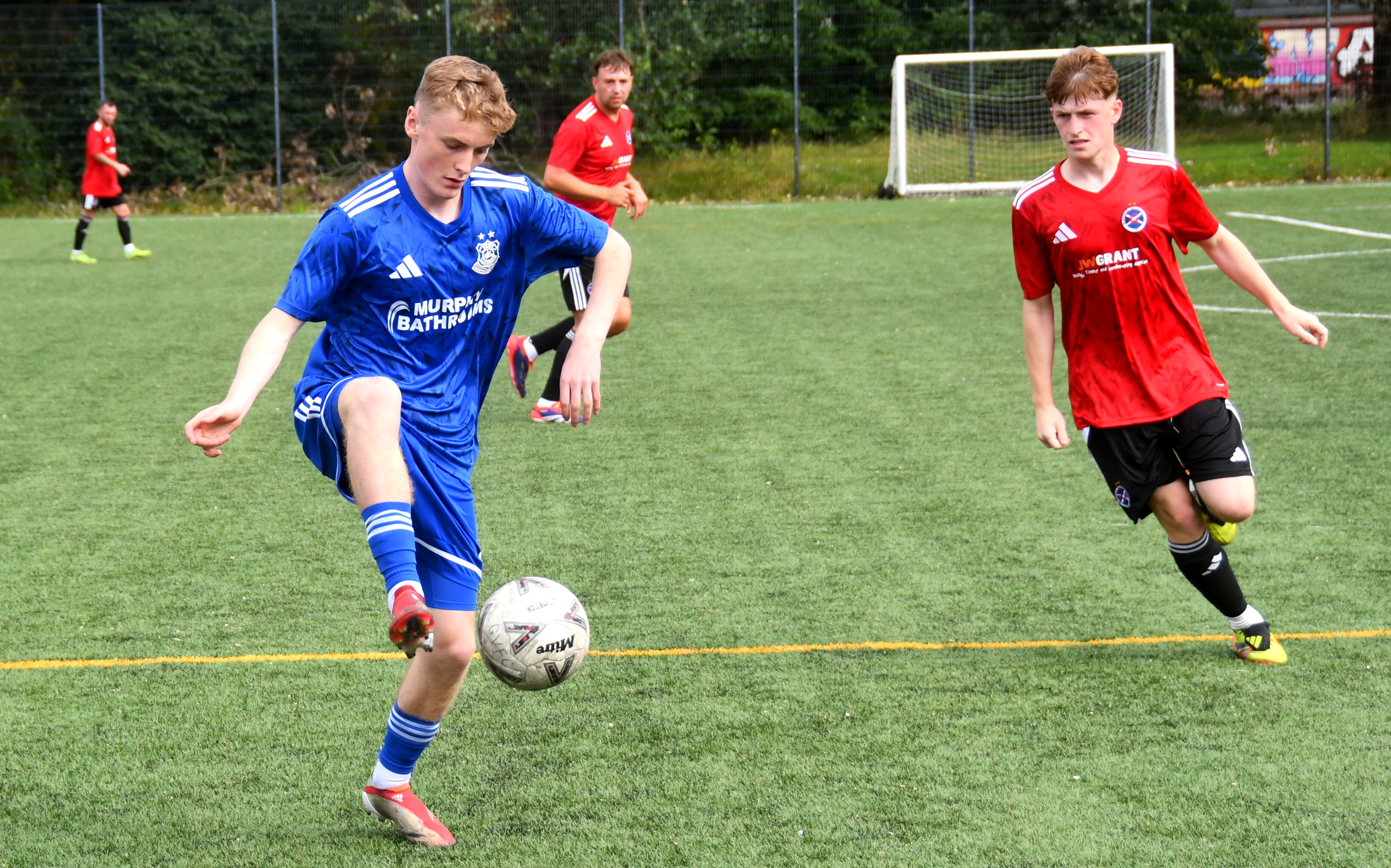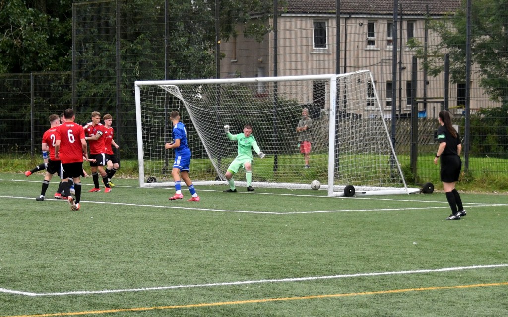Glenvale kicked off and Glenafton won a free-kick in the opening minute. Callum Wilson floated the ball to the right-hand side corner of the six-yard box where Lewis Currie won the aerial battle sending the ball back across the goalmouth for the incoming Shuggy Kerr to get a touch only for keeper Lee Kilbride to clutch the ball cleanly.