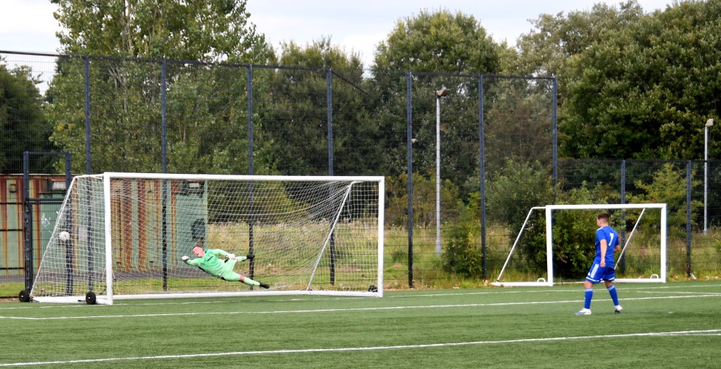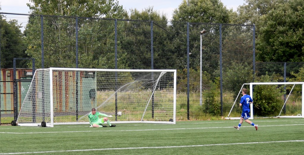 Into 5 minutes added time and Lindsay’s corner kick from the left saw keeper Kilbride come well off his line to palm the ball away with both hands and then stayed off his line in an attempt to gather it, only for another stramash to ensue, which saw Glenvale substitute Jamie Sidebotham and Glenafton captain Kerr colliding on the outskirts of the six-yard box, initiating appeals for a foul or a penalty, depending on your point of view. Anway the referee settled for a goal-kick as the ball ended up over the bye-line.